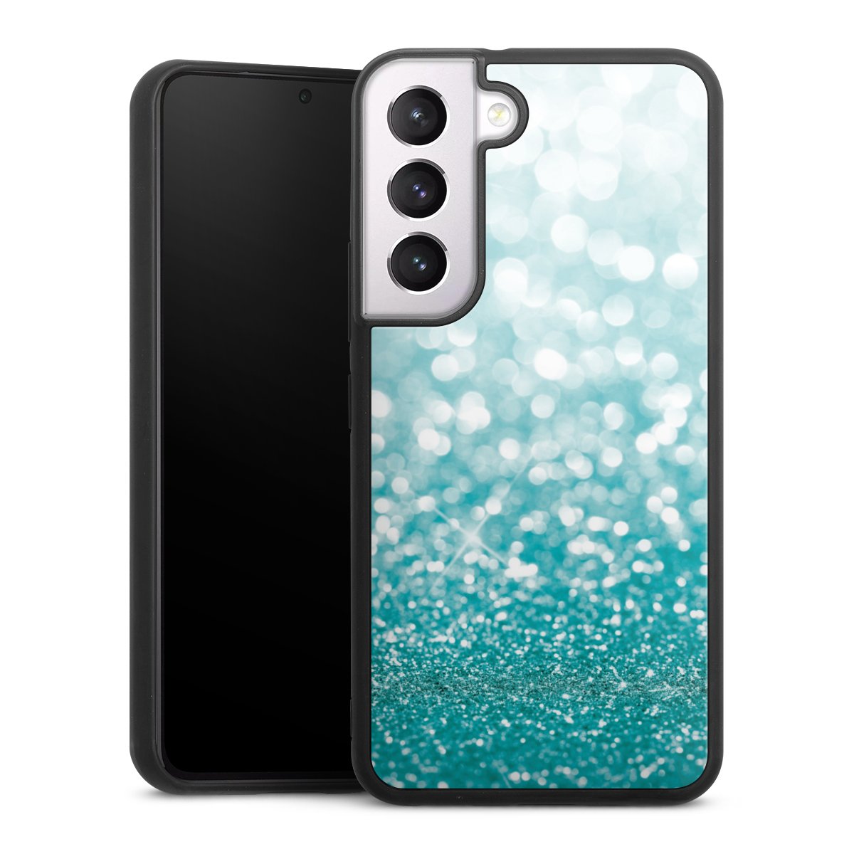 We print your design on the back of the glass inlay and then connect it firmly to the silicone case ,so that nothing sticks out and everything looks like it was cast from one piece. In addition, the sturdy glass element is protected from scratches by an additional coating and ensures a slight reflection on the shiny print image.
