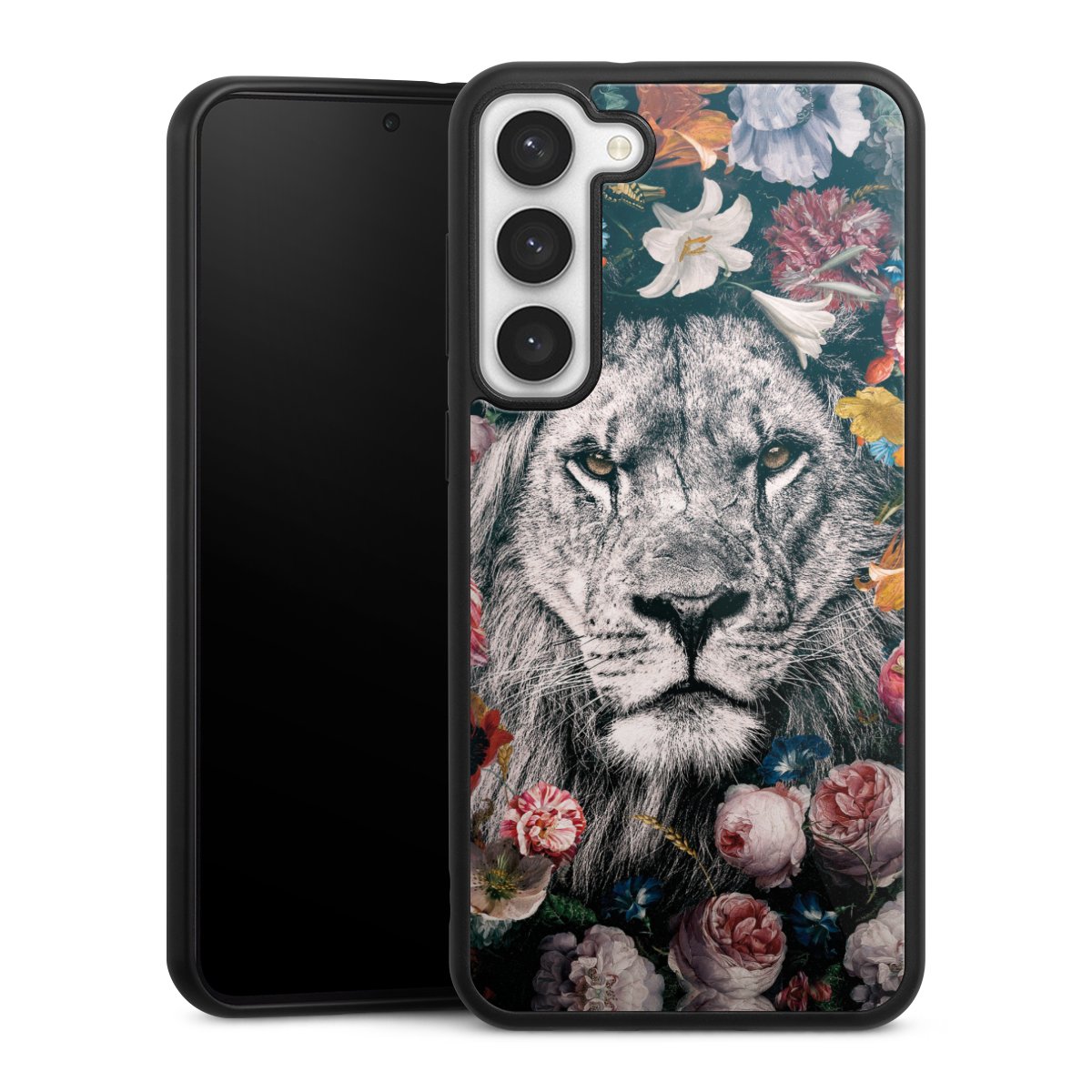 We print your design on the back of the glass inlay and then connect it firmly to the silicone case ,so that nothing sticks out and everything looks like it was cast from one piece. In addition, the sturdy glass element is protected from scratches by an additional coating and ensures a slight reflection on the shiny print image.
