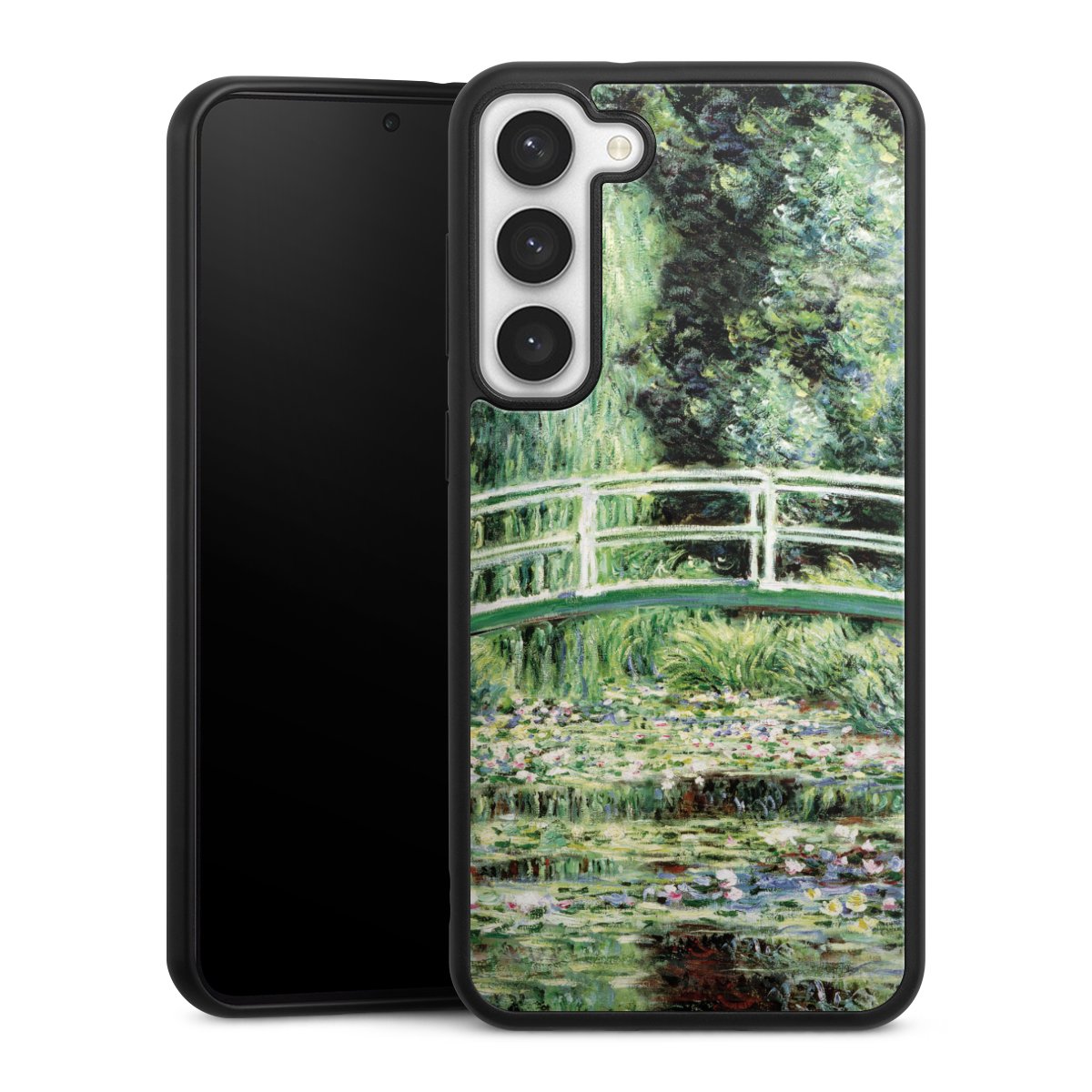 We print your design on the back of the glass inlay and then connect it firmly to the silicone case ,so that nothing sticks out and everything looks like it was cast from one piece. In addition, the sturdy glass element is protected from scratches by an additional coating and ensures a slight reflection on the shiny print image.