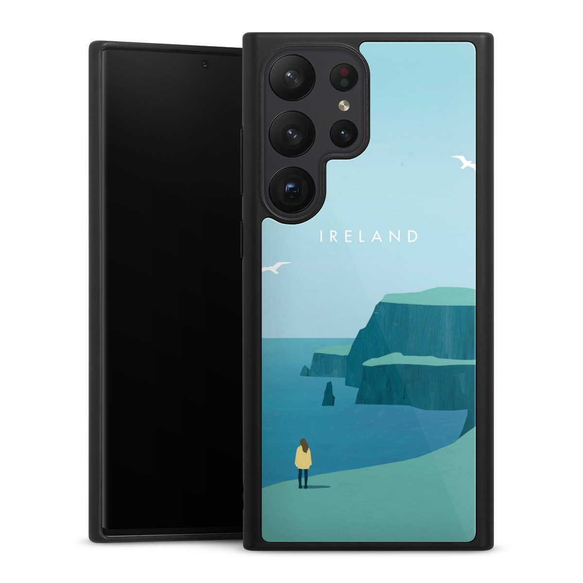 We print your design on the back of the glass inlay and then connect it firmly to the silicone case ,so that nothing sticks out and everything looks like it was cast from one piece. In addition, the sturdy glass element is protected from scratches by an additional coating and ensures a slight reflection on the shiny print image.