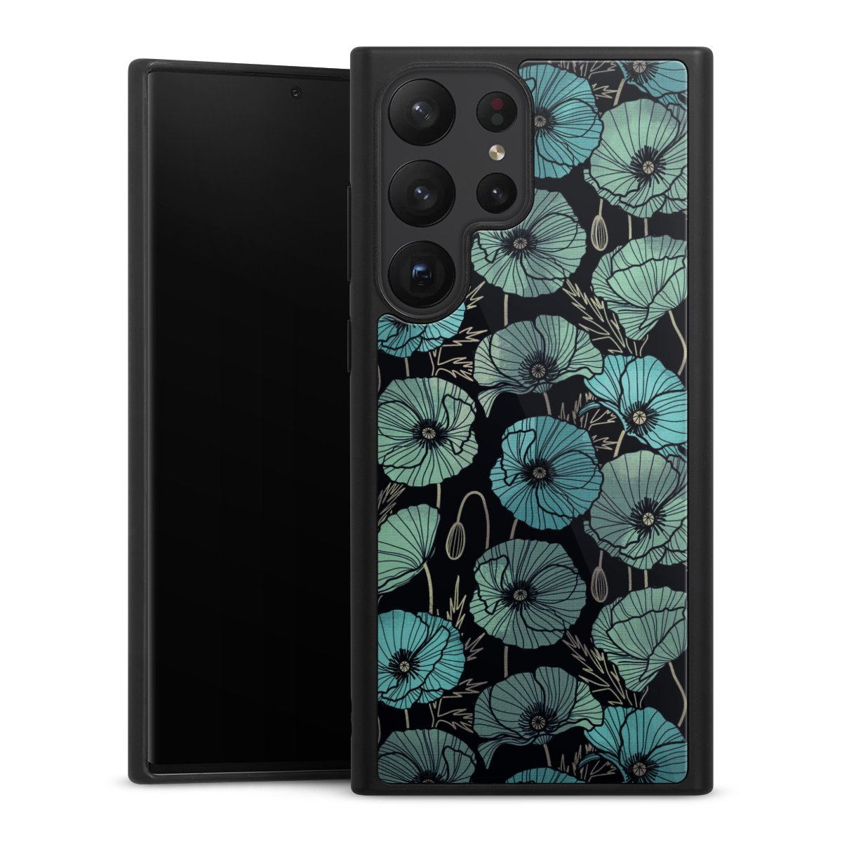 We print your design on the back of the glass inlay and then connect it firmly to the silicone case ,so that nothing sticks out and everything looks like it was cast from one piece. In addition, the sturdy glass element is protected from scratches by an additional coating and ensures a slight reflection on the shiny print image.