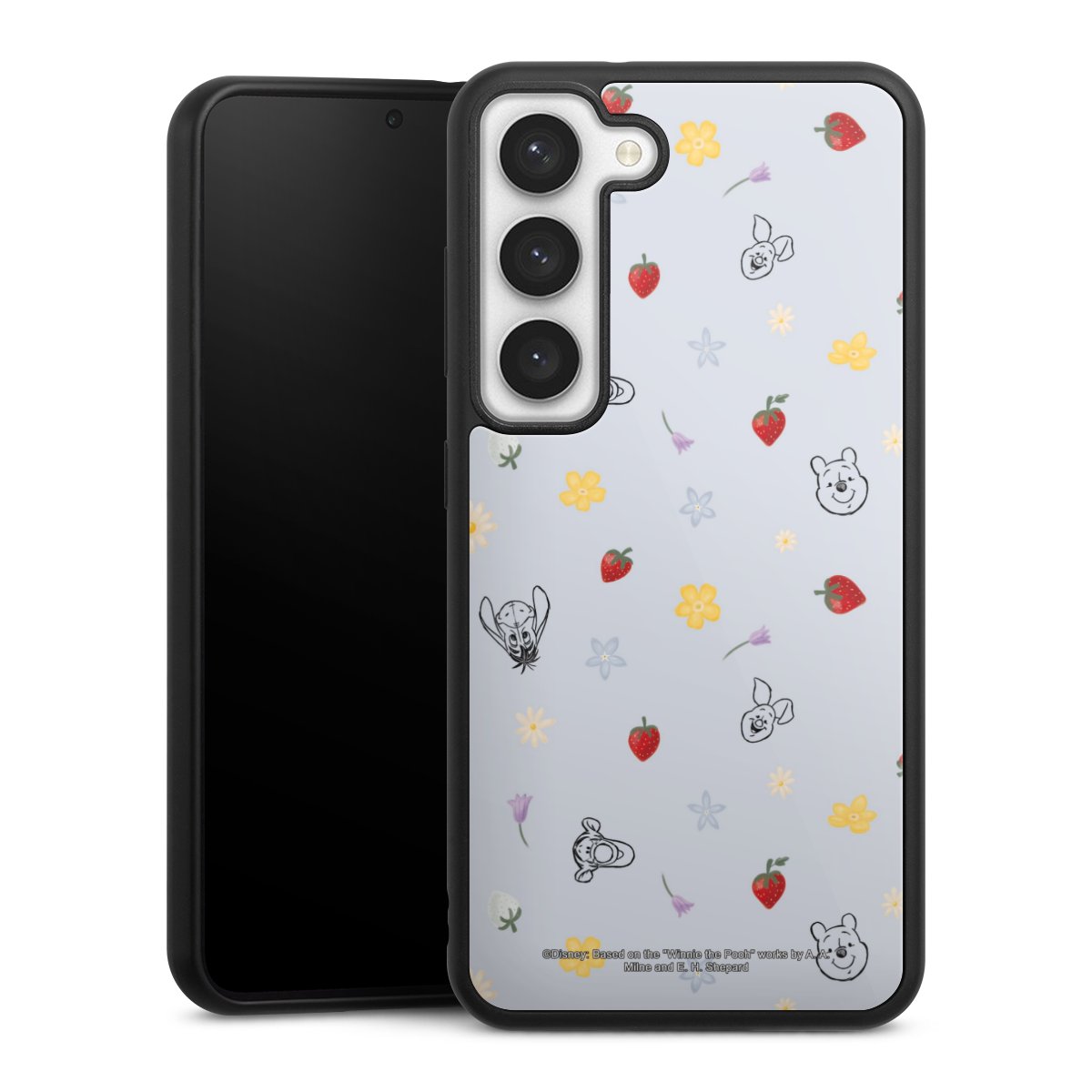 We print your design on the back of the glass inlay and then connect it firmly to the silicone case ,so that nothing sticks out and everything looks like it was cast from one piece. In addition, the sturdy glass element is protected from scratches by an additional coating and ensures a slight reflection on the shiny print image.