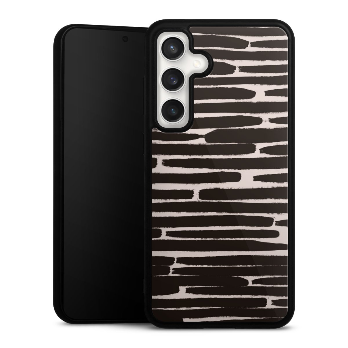 We print your design on the back of the glass inlay and then connect it firmly to the silicone case ,so that nothing sticks out and everything looks like it was cast from one piece. In addition, the sturdy glass element is protected from scratches by an additional coating and ensures a slight reflection on the shiny print image.