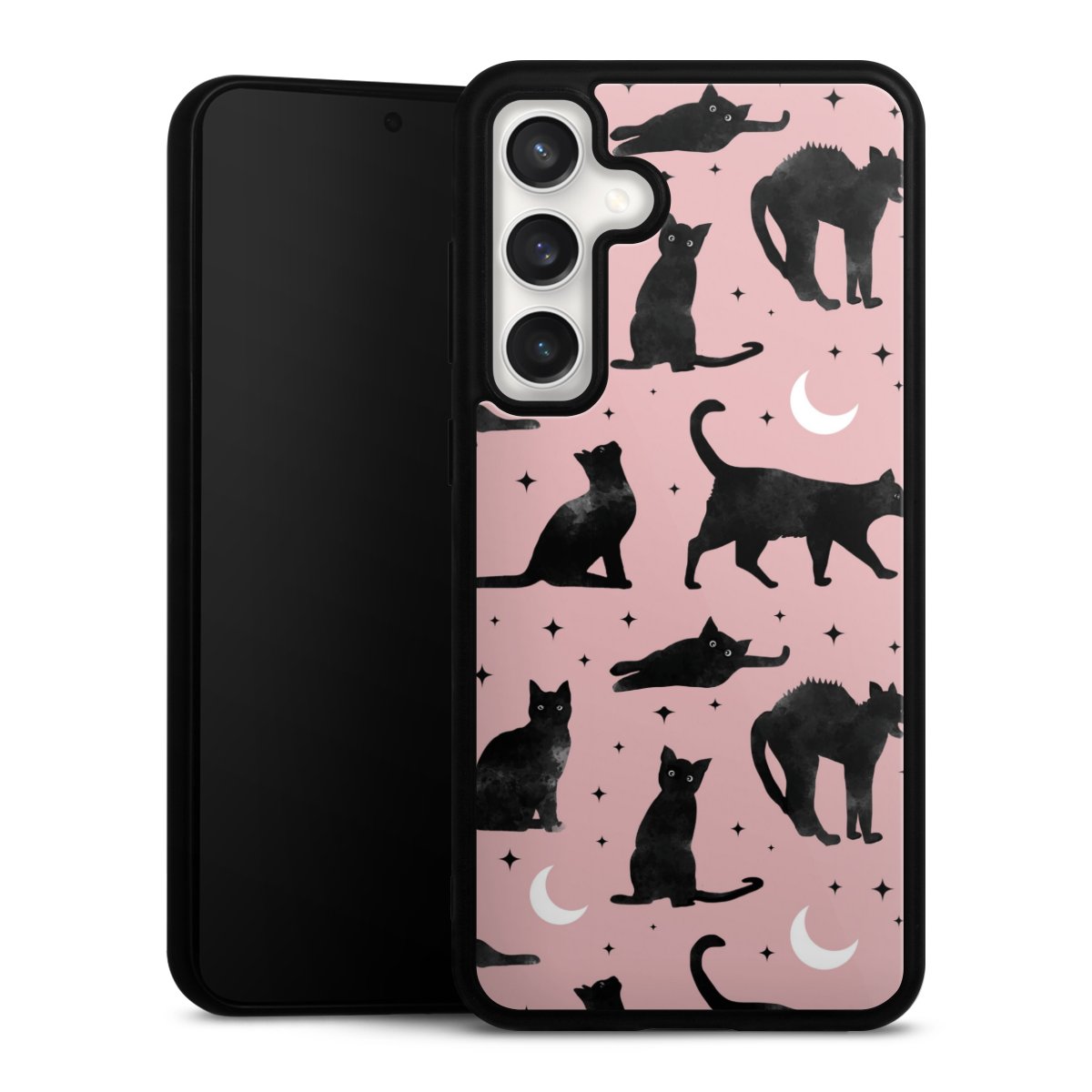 We print your design on the back of the glass inlay and then connect it firmly to the silicone case ,so that nothing sticks out and everything looks like it was cast from one piece. In addition, the sturdy glass element is protected from scratches by an additional coating and ensures a slight reflection on the shiny print image.