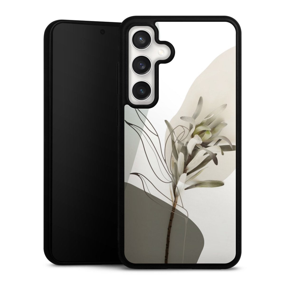 We print your design on the back of the glass inlay and then connect it firmly to the silicone case ,so that nothing sticks out and everything looks like it was cast from one piece. In addition, the sturdy glass element is protected from scratches by an additional coating and ensures a slight reflection on the shiny print image.