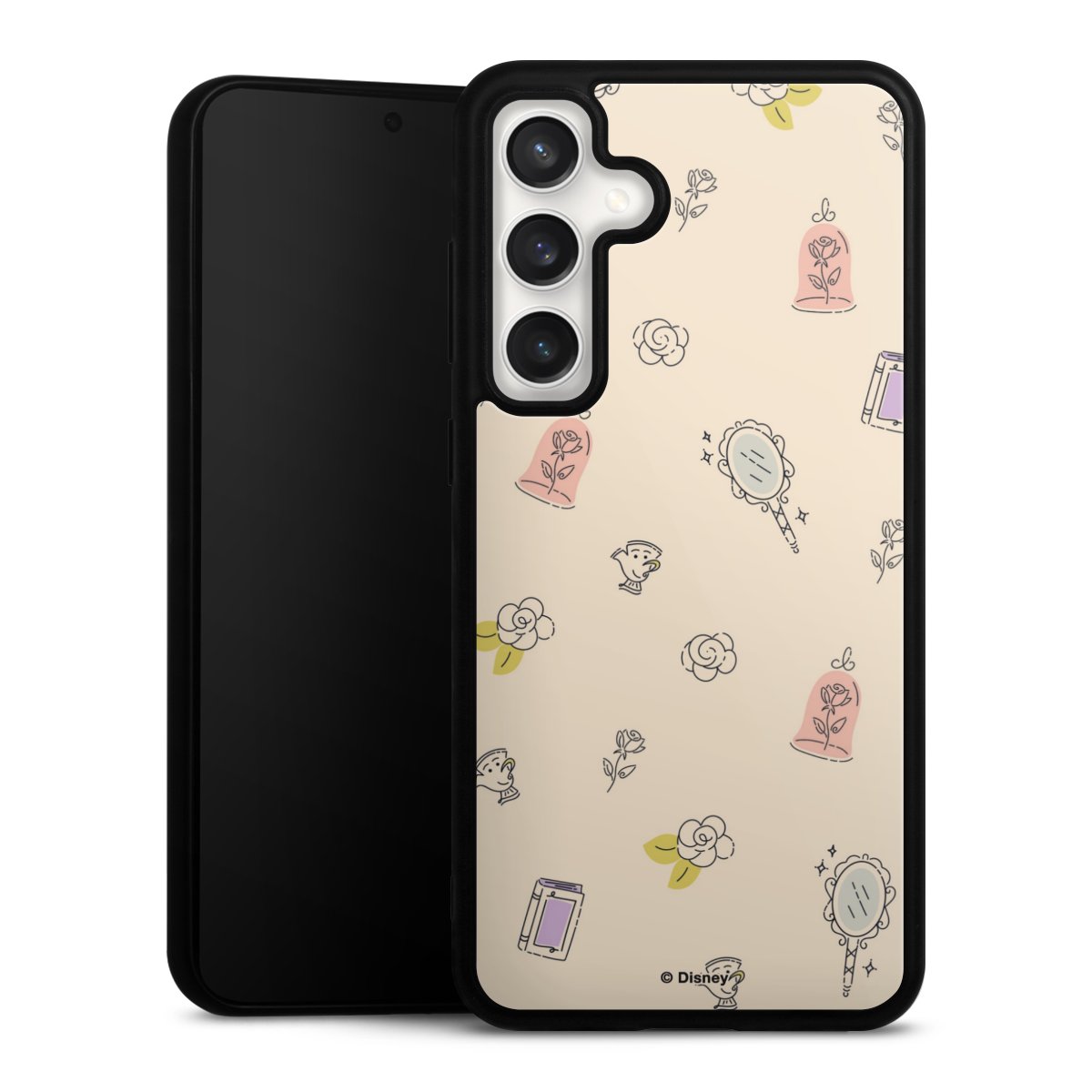 We print your design on the back of the glass inlay and then connect it firmly to the silicone case ,so that nothing sticks out and everything looks like it was cast from one piece. In addition, the sturdy glass element is protected from scratches by an additional coating and ensures a slight reflection on the shiny print image.