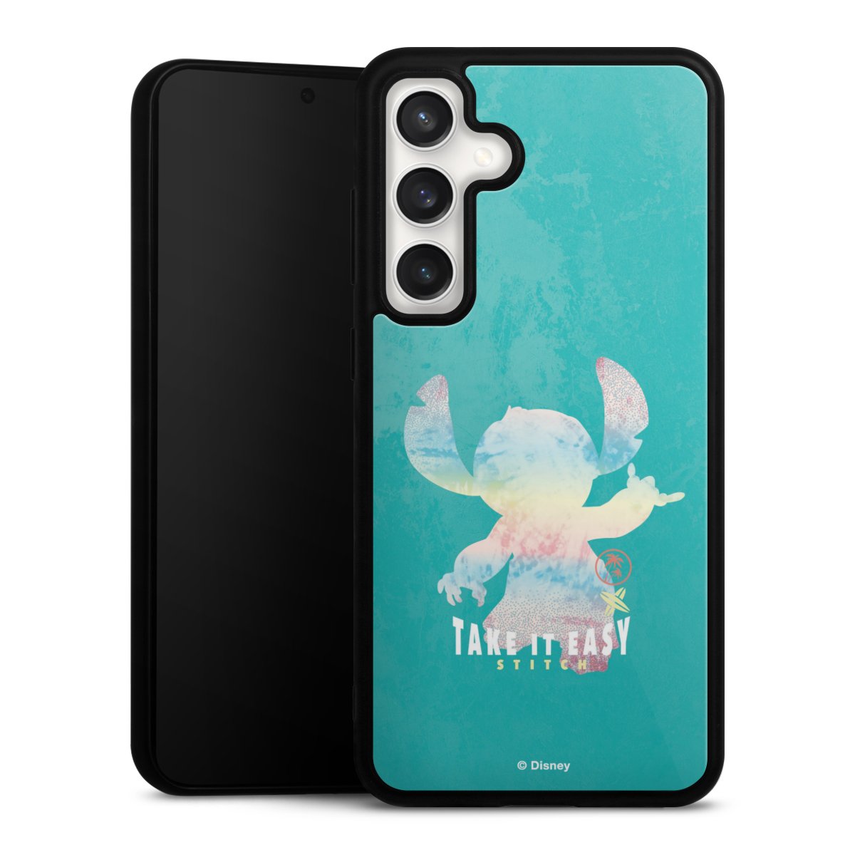 We print your design on the back of the glass inlay and then connect it firmly to the silicone case ,so that nothing sticks out and everything looks like it was cast from one piece. In addition, the sturdy glass element is protected from scratches by an additional coating and ensures a slight reflection on the shiny print image.