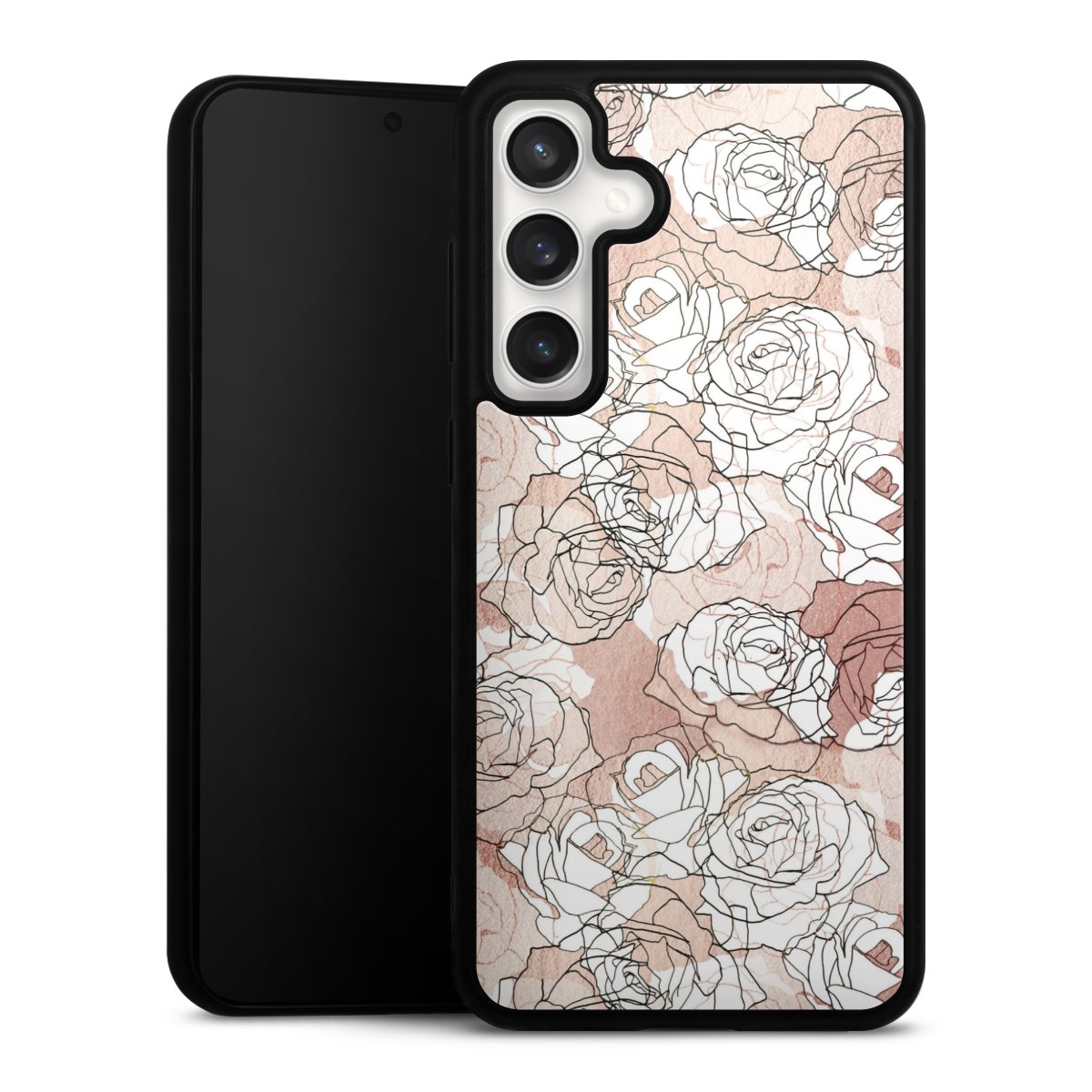 We print your design on the back of the glass inlay and then connect it firmly to the silicone case ,so that nothing sticks out and everything looks like it was cast from one piece. In addition, the sturdy glass element is protected from scratches by an additional coating and ensures a slight reflection on the shiny print image.