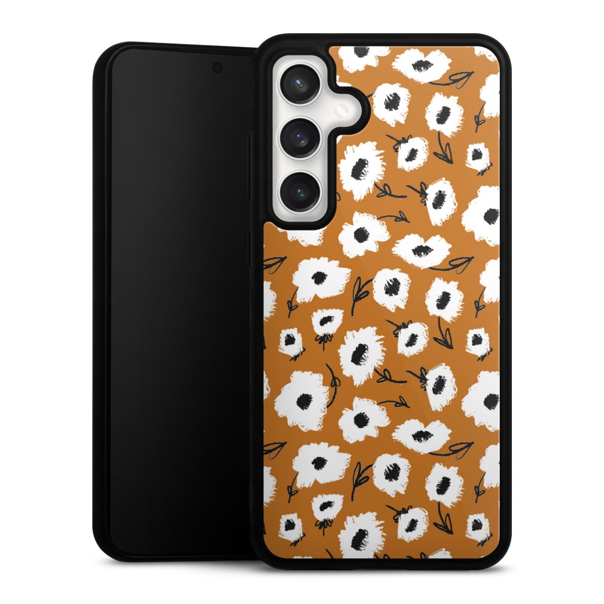 We print your design on the back of the glass inlay and then connect it firmly to the silicone case ,so that nothing sticks out and everything looks like it was cast from one piece. In addition, the sturdy glass element is protected from scratches by an additional coating and ensures a slight reflection on the shiny print image.