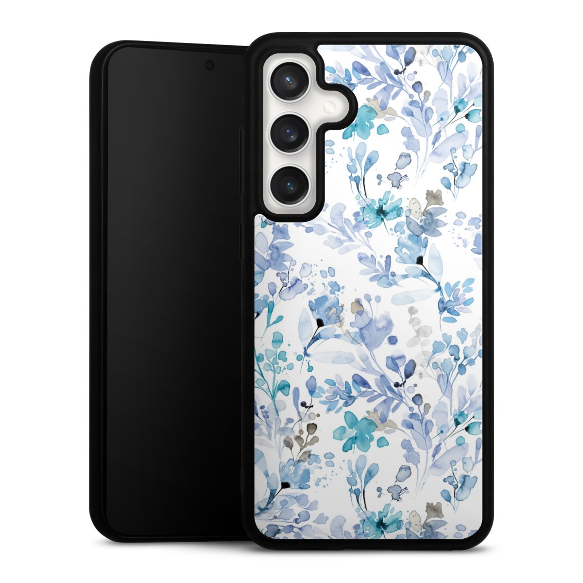 We print your design on the back of the glass inlay and then connect it firmly to the silicone case ,so that nothing sticks out and everything looks like it was cast from one piece. In addition, the sturdy glass element is protected from scratches by an additional coating and ensures a slight reflection on the shiny print image.