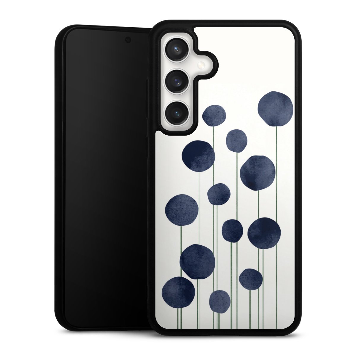 We print your design on the back of the glass inlay and then connect it firmly to the silicone case ,so that nothing sticks out and everything looks like it was cast from one piece. In addition, the sturdy glass element is protected from scratches by an additional coating and ensures a slight reflection on the shiny print image.
