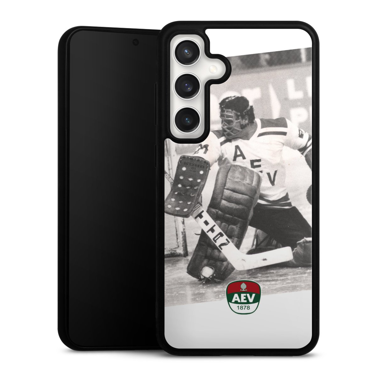We print your design on the back of the glass inlay and then connect it firmly to the silicone case ,so that nothing sticks out and everything looks like it was cast from one piece. In addition, the sturdy glass element is protected from scratches by an additional coating and ensures a slight reflection on the shiny print image.