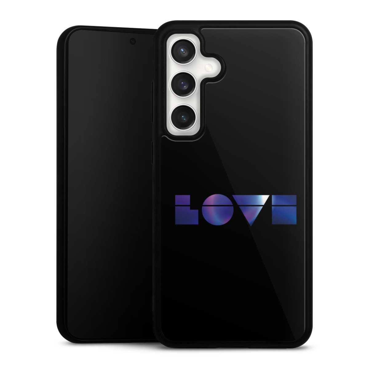We print your design on the back of the glass inlay and then connect it firmly to the silicone case ,so that nothing sticks out and everything looks like it was cast from one piece. In addition, the sturdy glass element is protected from scratches by an additional coating and ensures a slight reflection on the shiny print image.