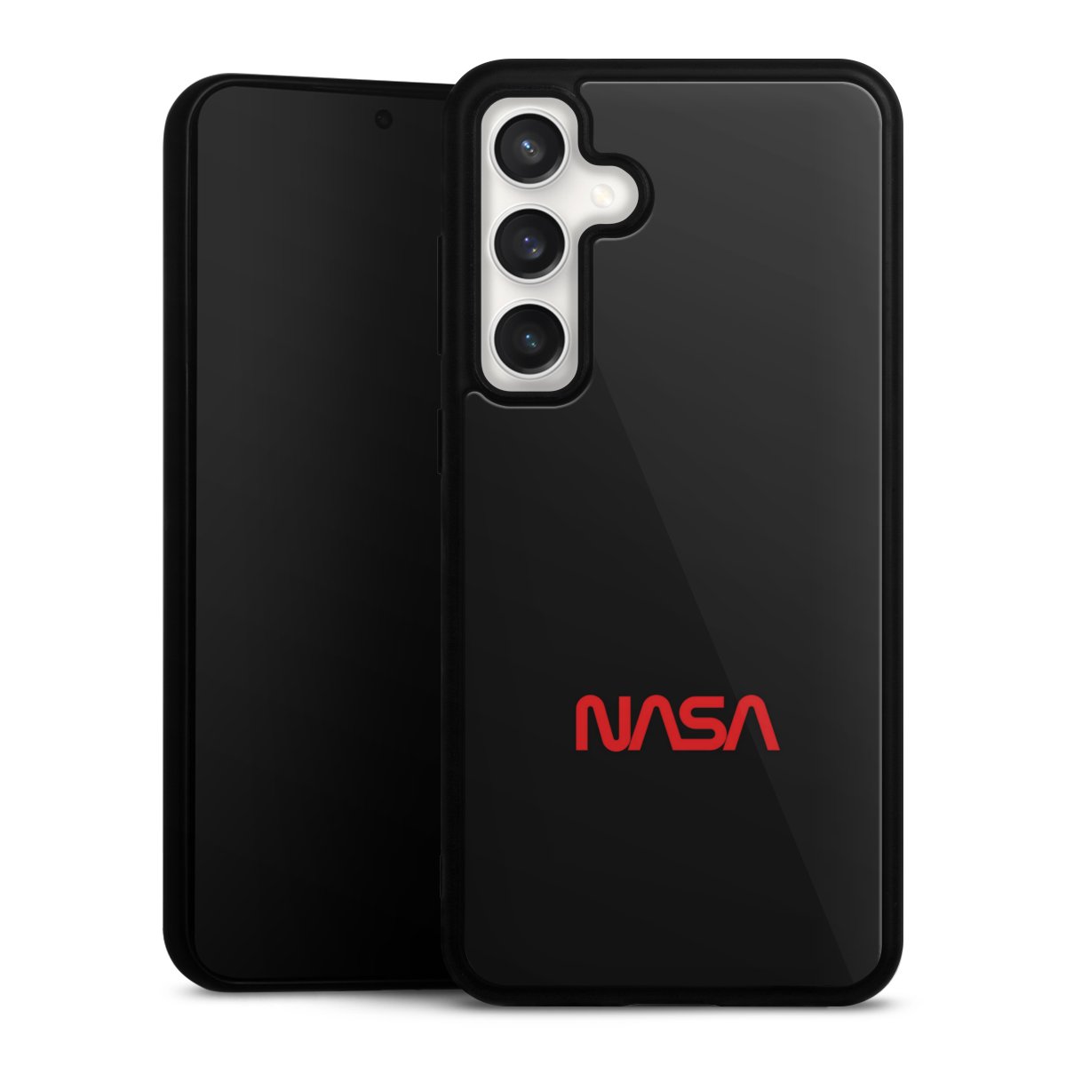 We print your design on the back of the glass inlay and then connect it firmly to the silicone case ,so that nothing sticks out and everything looks like it was cast from one piece. In addition, the sturdy glass element is protected from scratches by an additional coating and ensures a slight reflection on the shiny print image.
