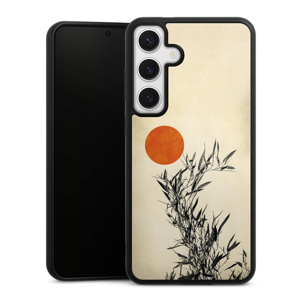 We print your design on the back of the glass inlay and then connect it firmly to the silicone case ,so that nothing sticks out and everything looks like it was cast from one piece. In addition, the sturdy glass element is protected from scratches by an additional coating and ensures a slight reflection on the shiny print image.