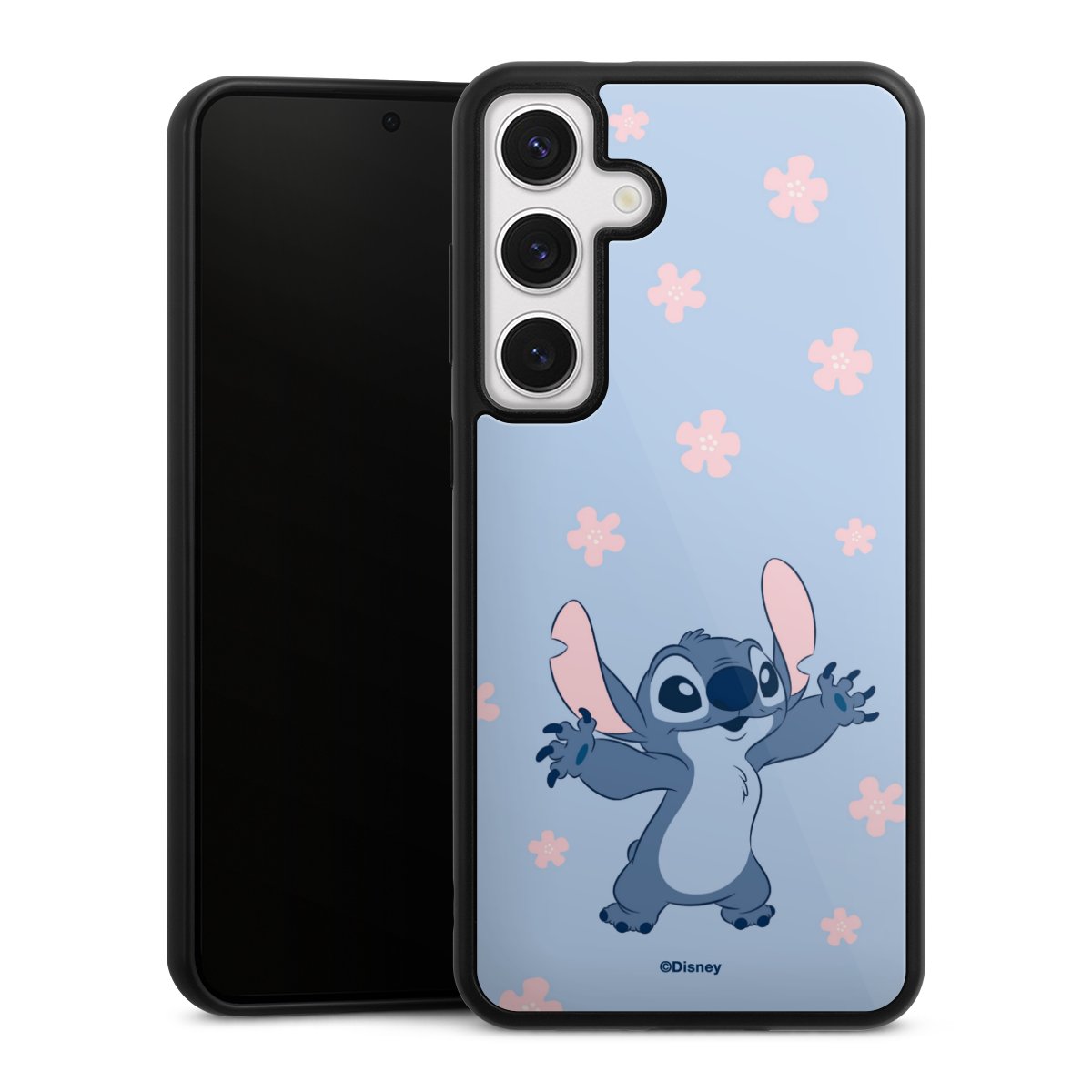 We print your design on the back of the glass inlay and then connect it firmly to the silicone case ,so that nothing sticks out and everything looks like it was cast from one piece. In addition, the sturdy glass element is protected from scratches by an additional coating and ensures a slight reflection on the shiny print image.