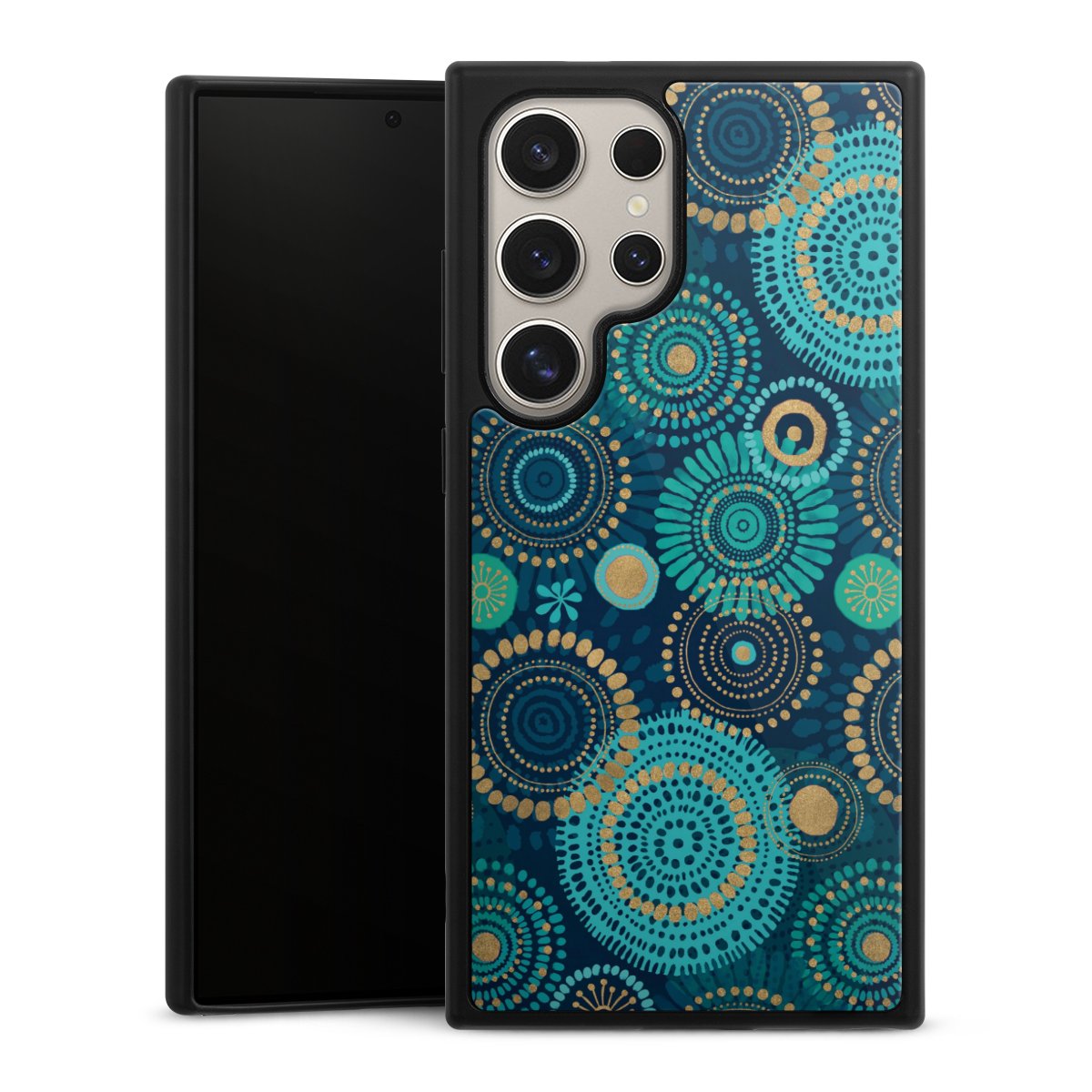 We print your design on the back of the glass inlay and then connect it firmly to the silicone case ,so that nothing sticks out and everything looks like it was cast from one piece. In addition, the sturdy glass element is protected from scratches by an additional coating and ensures a slight reflection on the shiny print image.