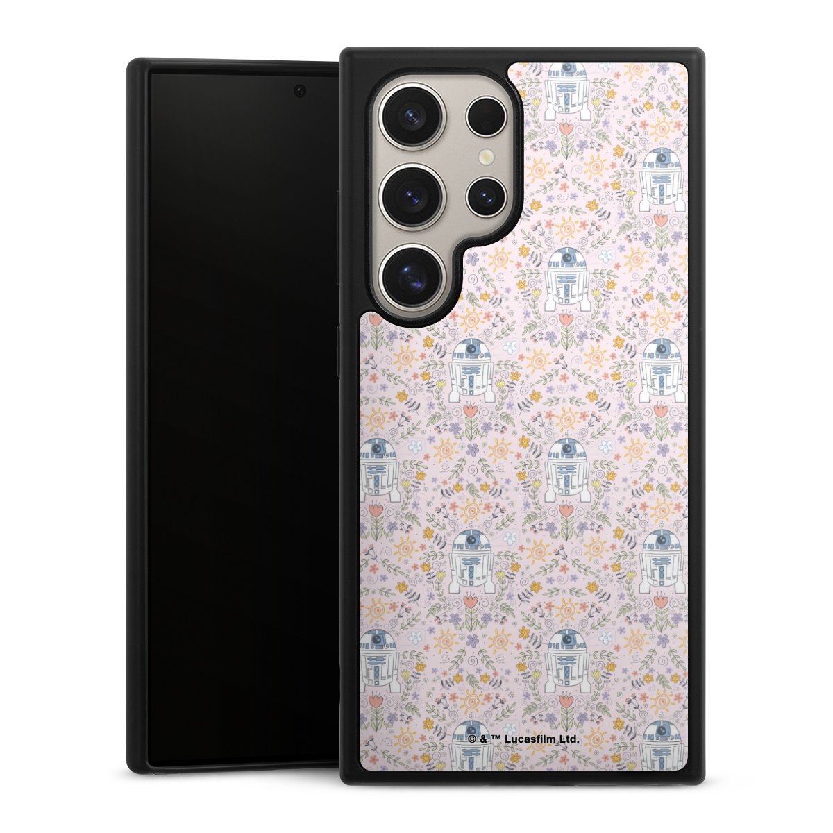 We print your design on the back of the glass inlay and then connect it firmly to the silicone case ,so that nothing sticks out and everything looks like it was cast from one piece. In addition, the sturdy glass element is protected from scratches by an additional coating and ensures a slight reflection on the shiny print image.