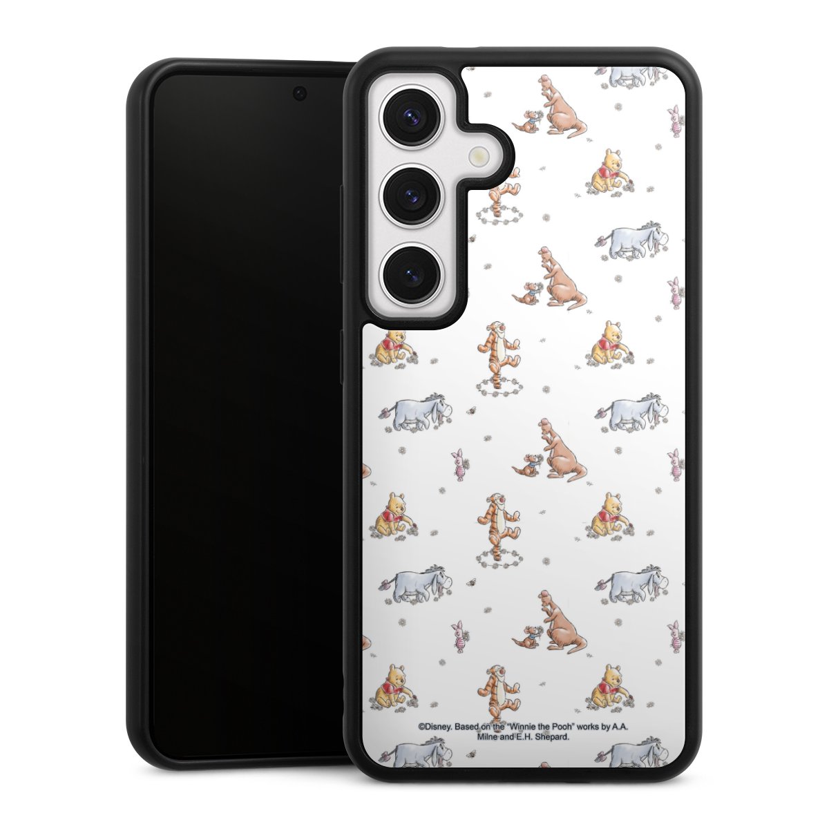We print your design on the back of the glass inlay and then connect it firmly to the silicone case ,so that nothing sticks out and everything looks like it was cast from one piece. In addition, the sturdy glass element is protected from scratches by an additional coating and ensures a slight reflection on the shiny print image.