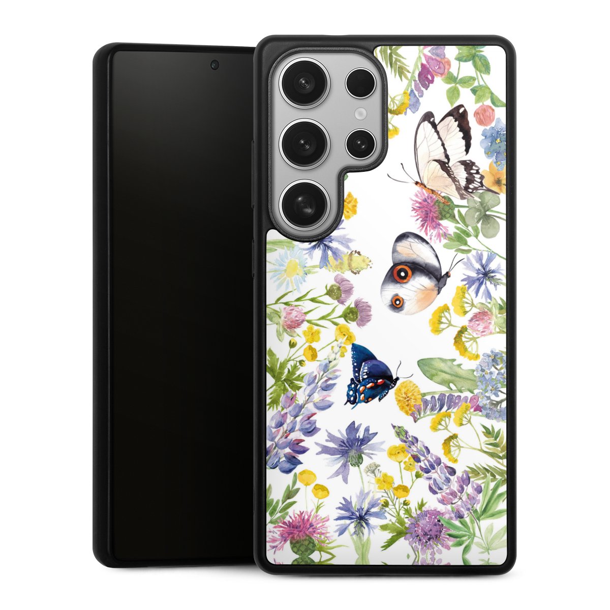 We print your design on the back of the glass inlay and then connect it firmly to the silicone case ,so that nothing sticks out and everything looks like it was cast from one piece. In addition, the sturdy glass element is protected from scratches by an additional coating and ensures a slight reflection on the shiny print image.