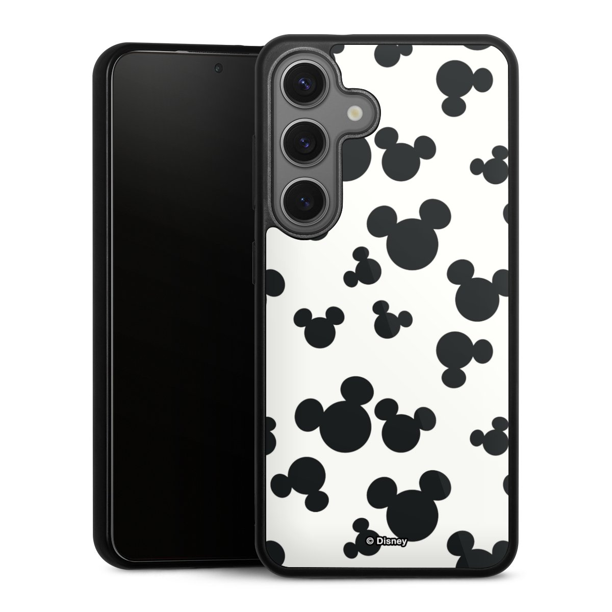 We print your design on the back of the glass inlay and then connect it firmly to the silicone case ,so that nothing sticks out and everything looks like it was cast from one piece. In addition, the sturdy glass element is protected from scratches by an additional coating and ensures a slight reflection on the shiny print image.