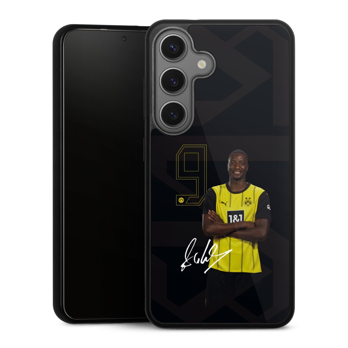 We print your design on the back of the glass inlay and then connect it firmly to the silicone case ,so that nothing sticks out and everything looks like it was cast from one piece. In addition, the sturdy glass element is protected from scratches by an additional coating and ensures a slight reflection on the shiny print image.