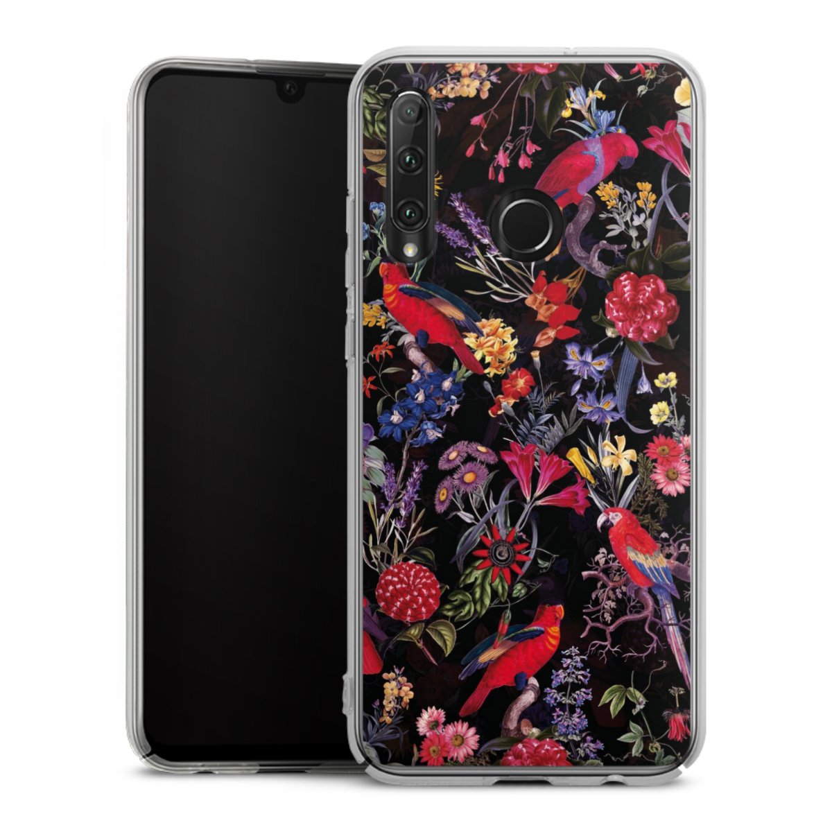 Dark Flowers and Parrots
