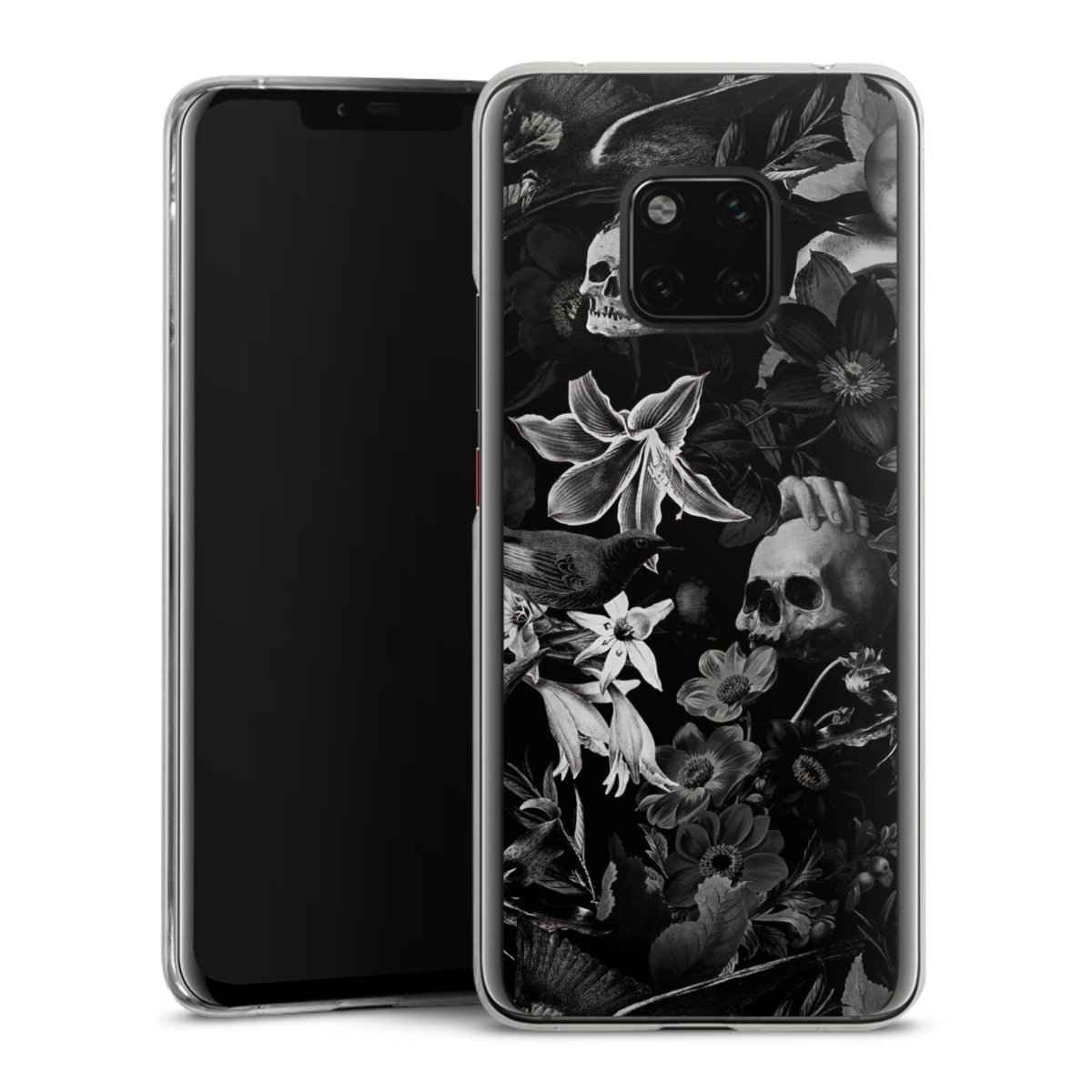 Skulls and Flowers on Black Background