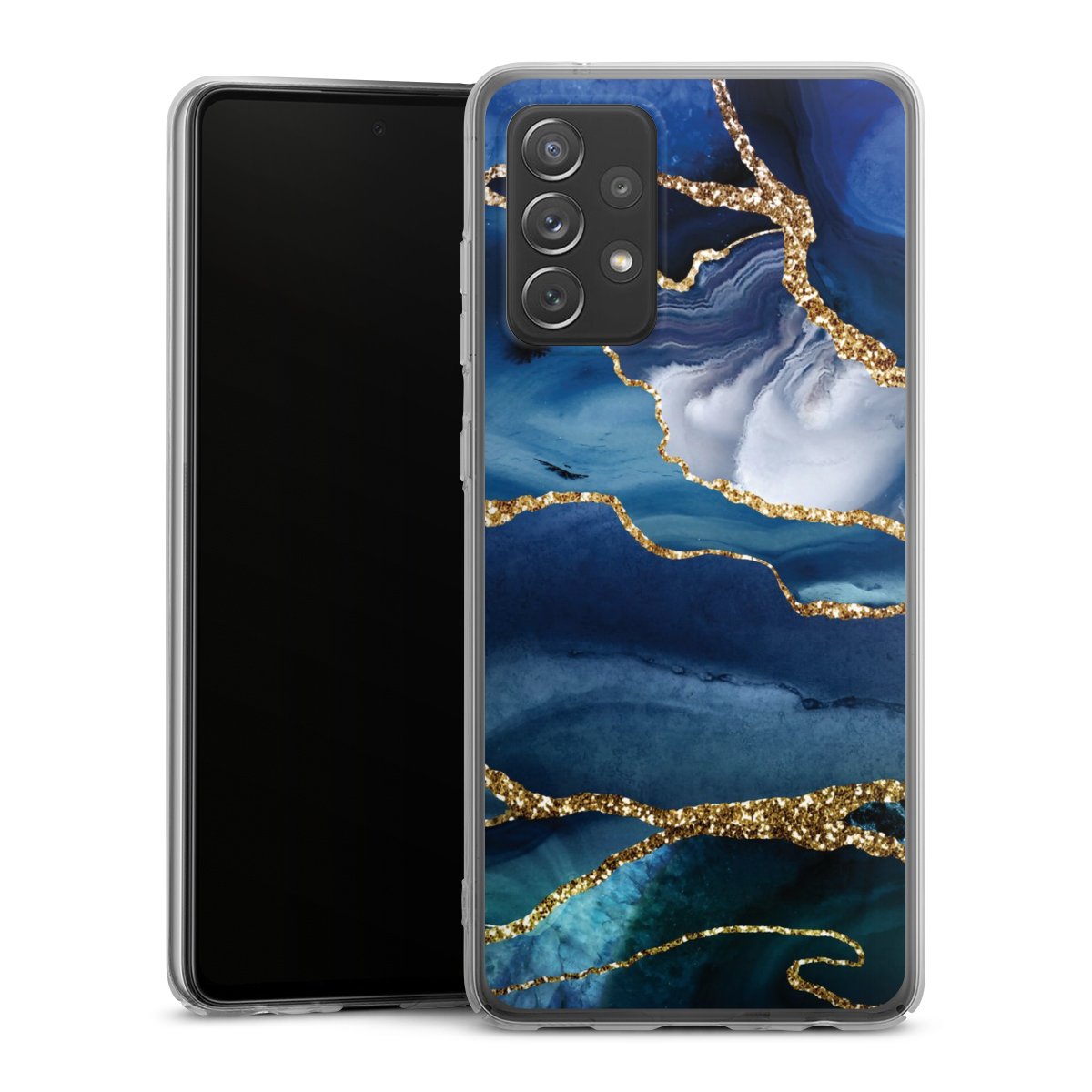 Blue Marble Gold Glitter Look