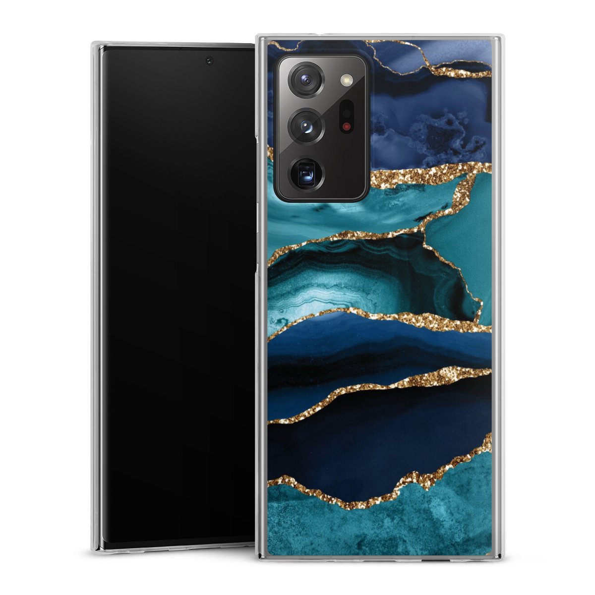Dark and Light Blue Marble Gold Glitter Look