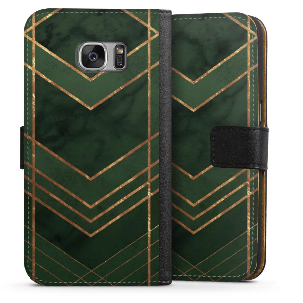 Dark Green Pattern Golden Stripes