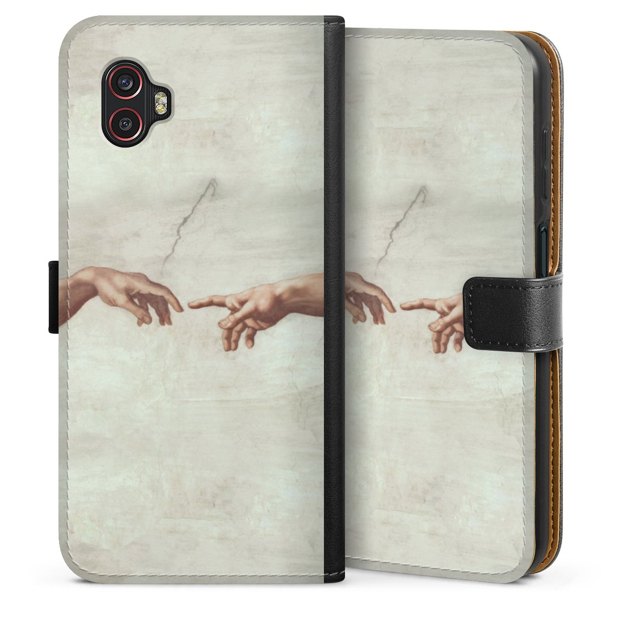 Product details The handy phone bag comes with a polycarbonate hard case on the inside, offering your smartphone secure protection while we are using a highquality, vegan Skai® leather imitate to form the flap and the outside of the case. You can open the flap sidewards and slots for money bills and business cars are included. The case closes with an magnetic flap.
