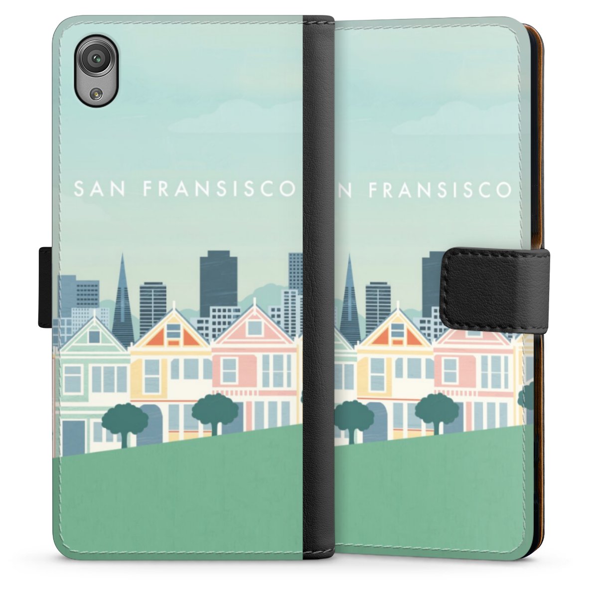 Product details The handy phone bag comes with a polycarbonate hard case on the inside, offering your smartphone secure protection while we are using a highquality, vegan Skai® leather imitate to form the flap and the outside of the case. You can open the flap sidewards and slots for money bills and business cars are included. The case closes with an magnetic flap.