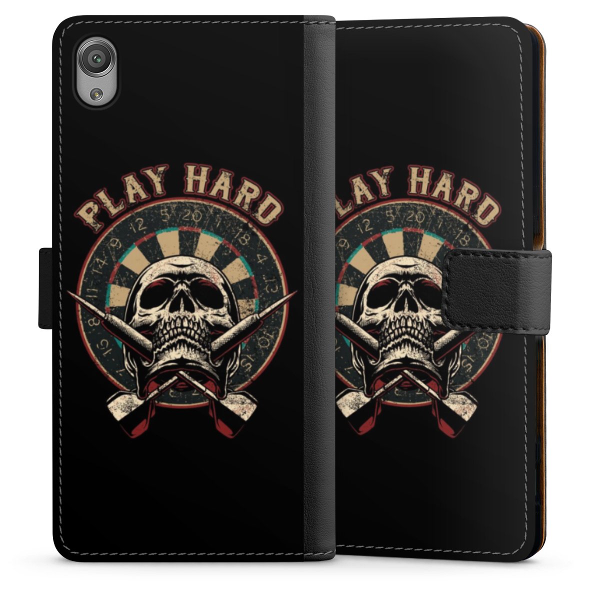 Product details The handy phone bag comes with a polycarbonate hard case on the inside, offering your smartphone secure protection while we are using a highquality, vegan Skai® leather imitate to form the flap and the outside of the case. You can open the flap sidewards and slots for money bills and business cars are included. The case closes with an magnetic flap.