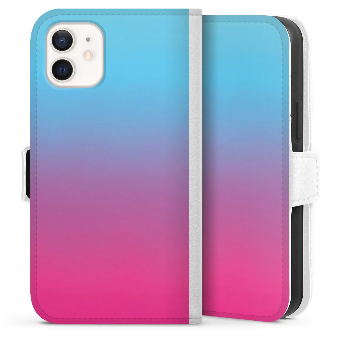 For our Sideflip Case we are using our advanced direct printing technology. The back and frontside are fully printabale, the inside of the phone bag is left unprinted. You can order the phone case without print, printed completely or also with a partial print.