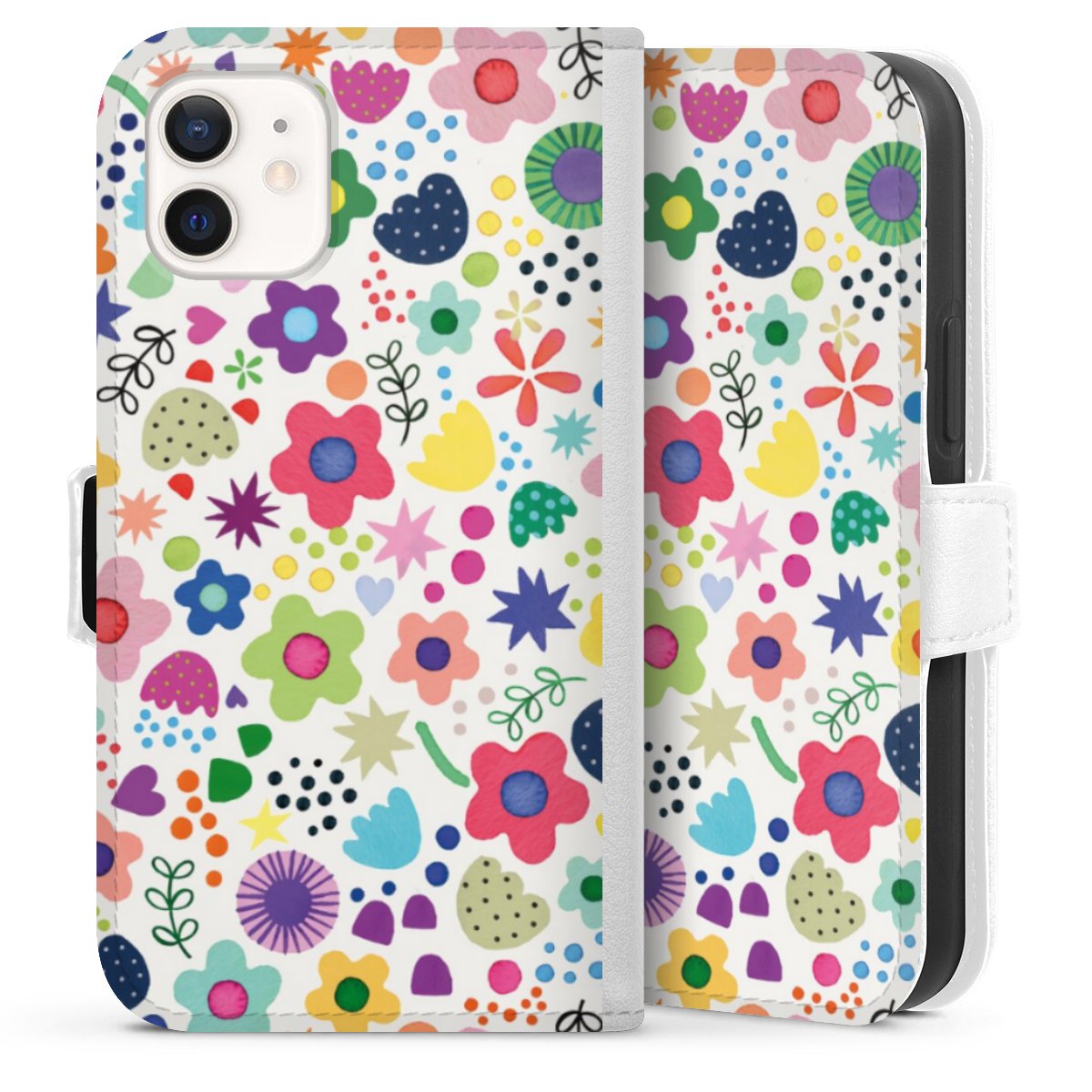 For our Sideflip Case we are using our advanced direct printing technology. The back and frontside are fully printabale, the inside of the phone bag is left unprinted. You can order the phone case without print, printed completely or also with a partial print.