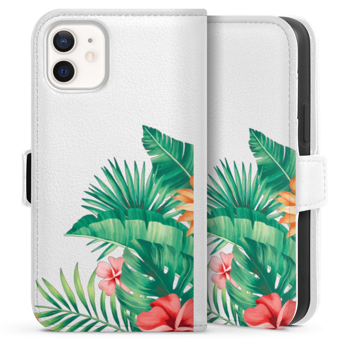 For our Sideflip Case we are using our advanced direct printing technology. The back and frontside are fully printabale, the inside of the phone bag is left unprinted. You can order the phone case without print, printed completely or also with a partial print.
