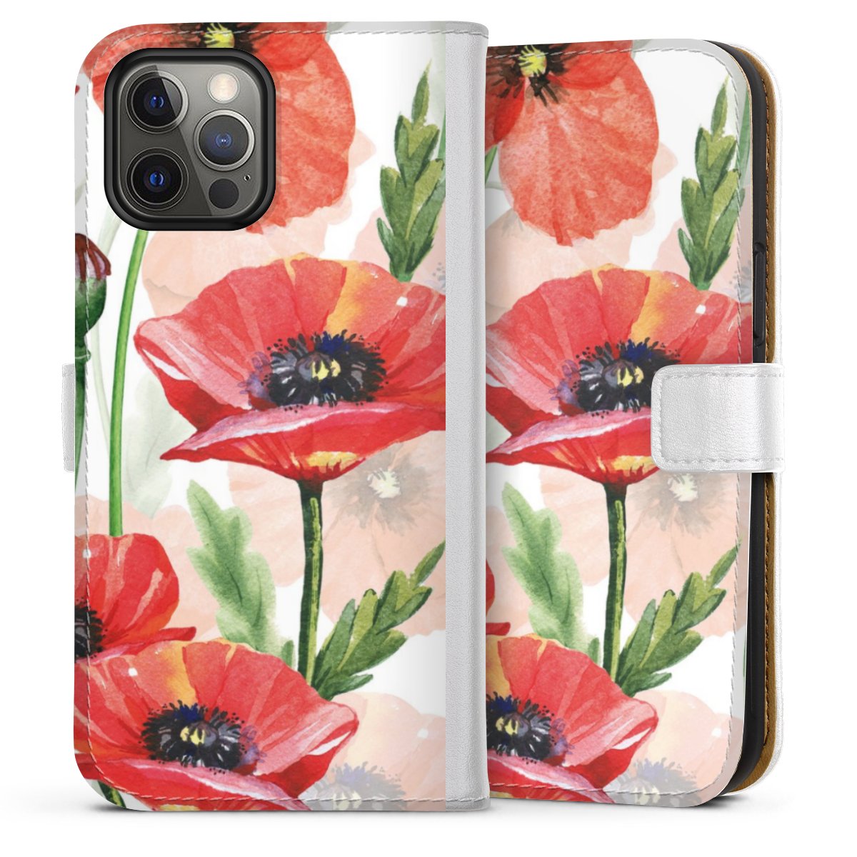 For our Sideflip Case we are using our advanced direct printing technology. The back and frontside are fully printabale, the inside of the phone bag is left unprinted. You can order the phone case without print, printed completely or also with a partial print.