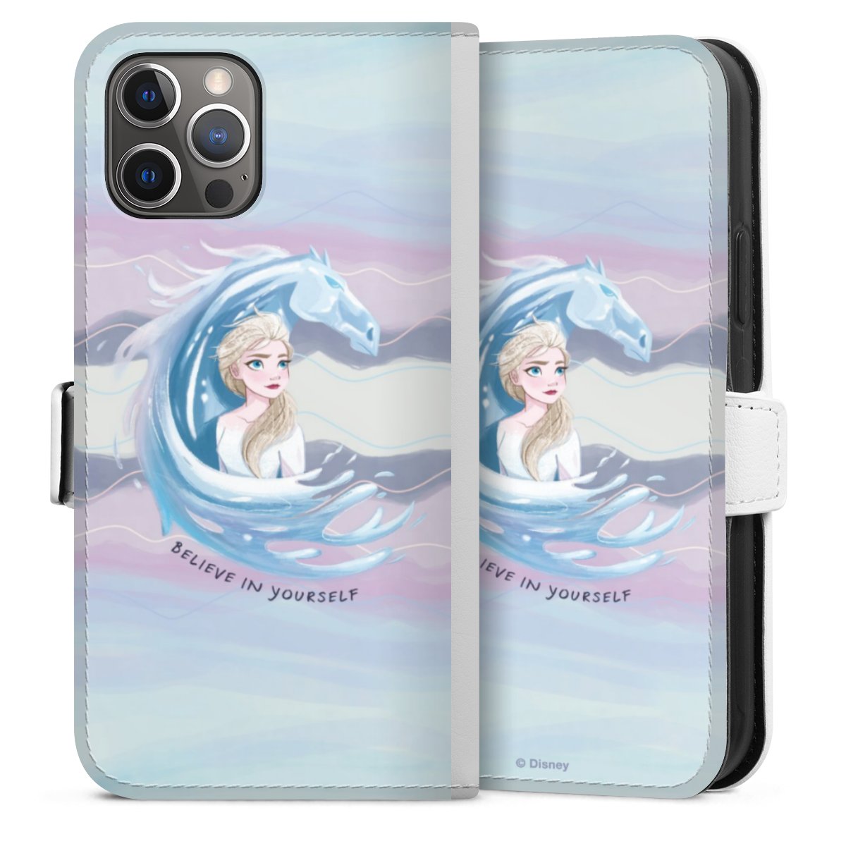 For our Sideflip Case we are using our advanced direct printing technology. The back and frontside are fully printabale, the inside of the phone bag is left unprinted. You can order the phone case without print, printed completely or also with a partial print.