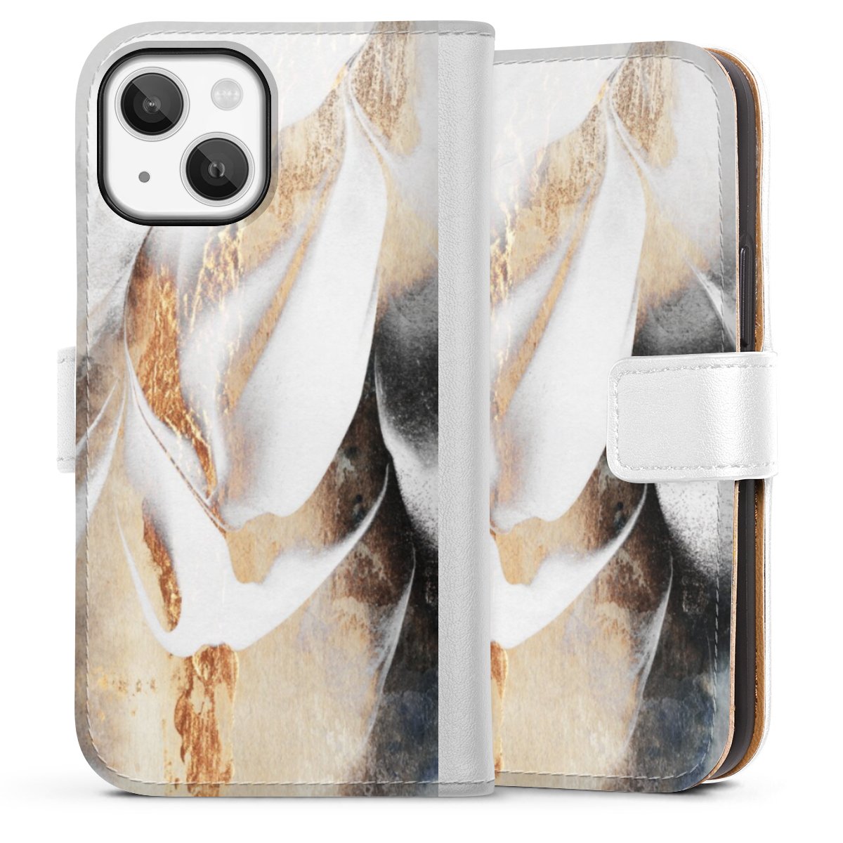 For our Sideflip Case we are using our advanced direct printing technology. The back and frontside are fully printabale, the inside of the phone bag is left unprinted. You can order the phone case without print, printed completely or also with a partial print.