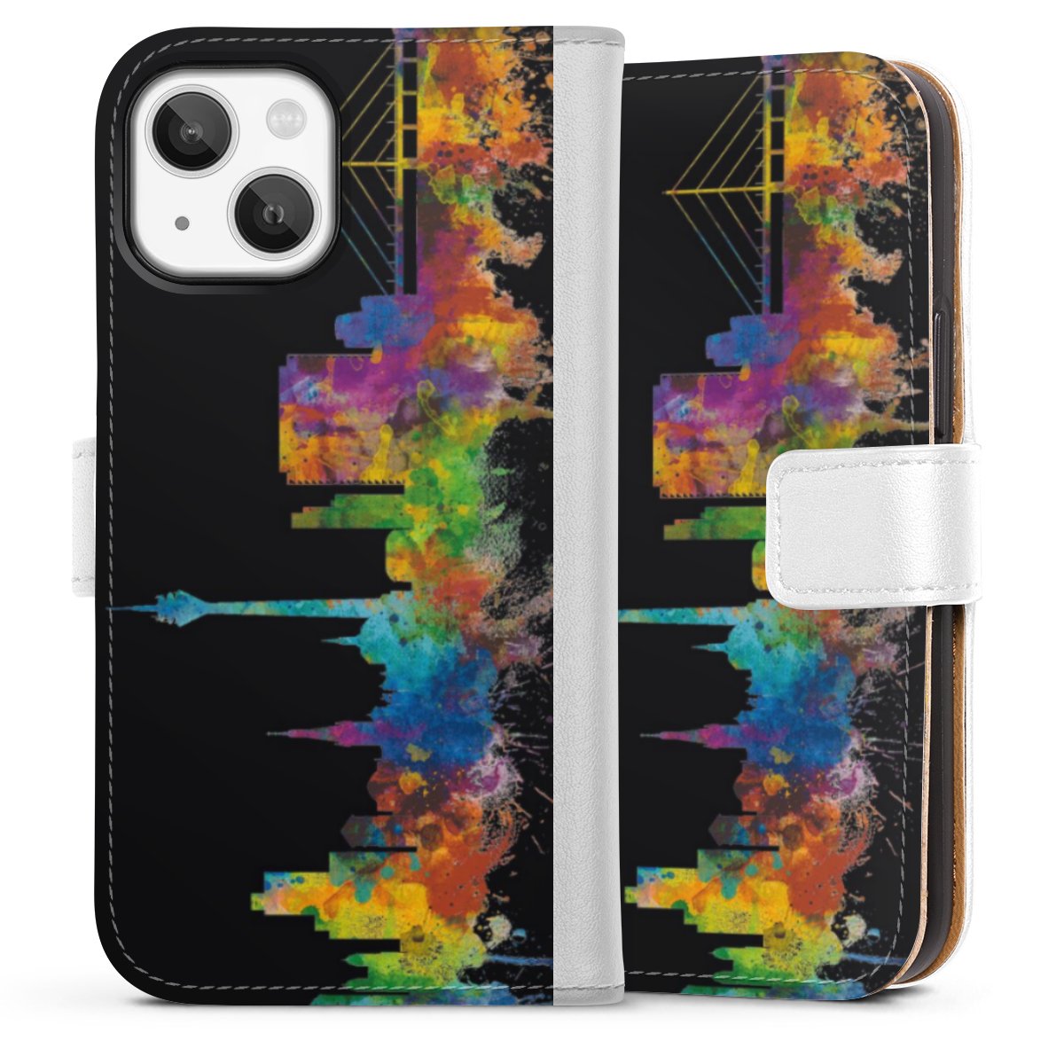 For our Sideflip Case we are using our advanced direct printing technology. The back and frontside are fully printabale, the inside of the phone bag is left unprinted. You can order the phone case without print, printed completely or also with a partial print.