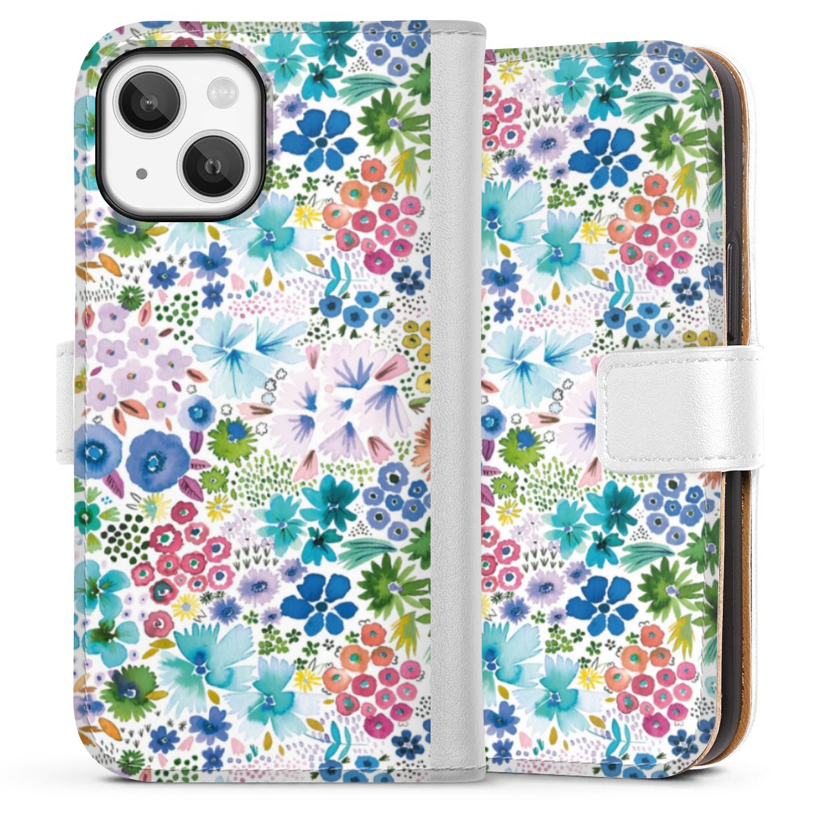 For our Sideflip Case we are using our advanced direct printing technology. The back and frontside are fully printabale, the inside of the phone bag is left unprinted. You can order the phone case without print, printed completely or also with a partial print.