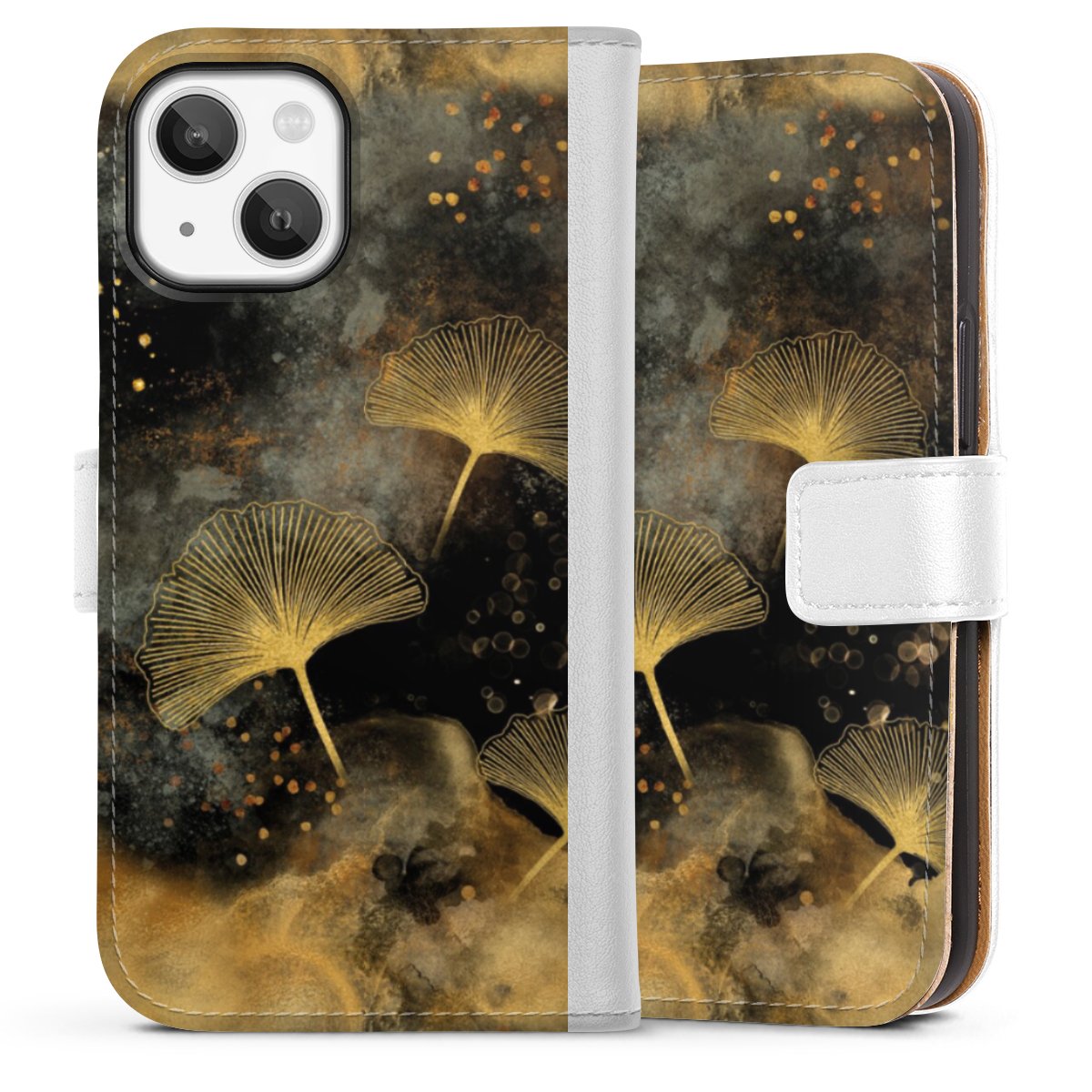 For our Sideflip Case we are using our advanced direct printing technology. The back and frontside are fully printabale, the inside of the phone bag is left unprinted. You can order the phone case without print, printed completely or also with a partial print.