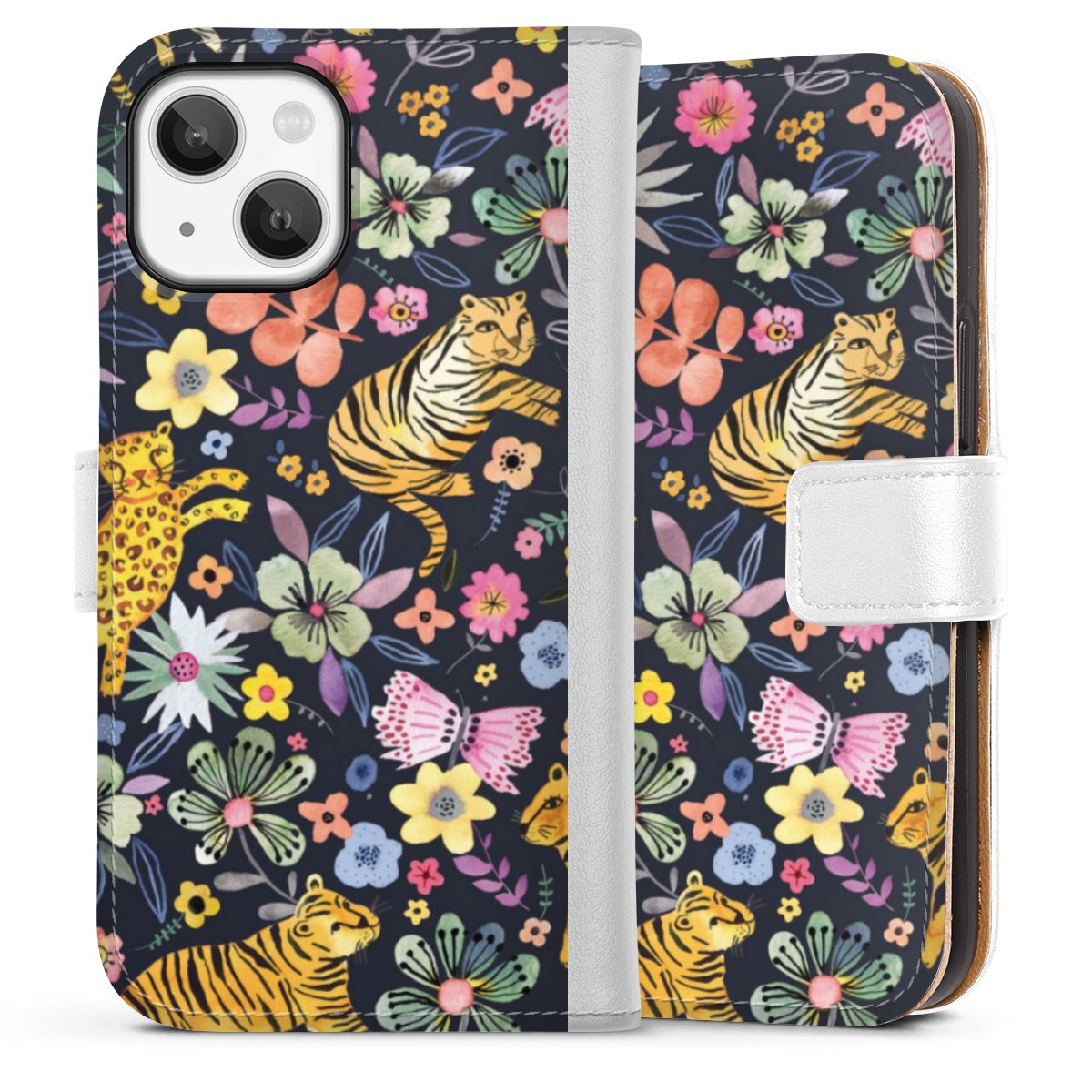 For our Sideflip Case we are using our advanced direct printing technology. The back and frontside are fully printabale, the inside of the phone bag is left unprinted. You can order the phone case without print, printed completely or also with a partial print.