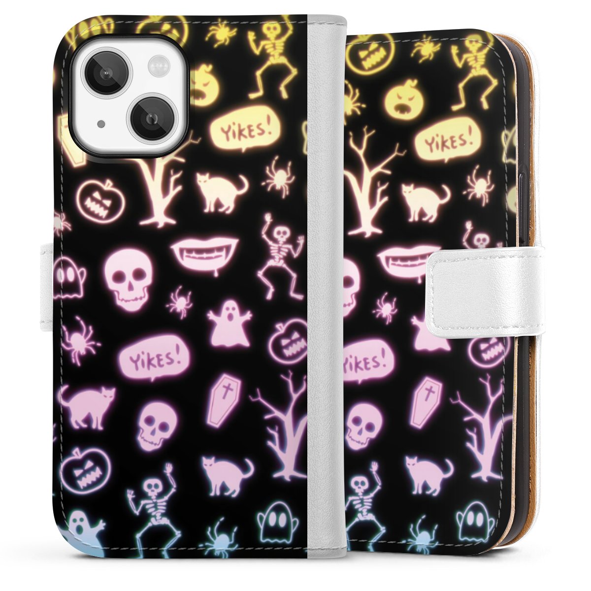 For our Sideflip Case we are using our advanced direct printing technology. The back and frontside are fully printabale, the inside of the phone bag is left unprinted. You can order the phone case without print, printed completely or also with a partial print.