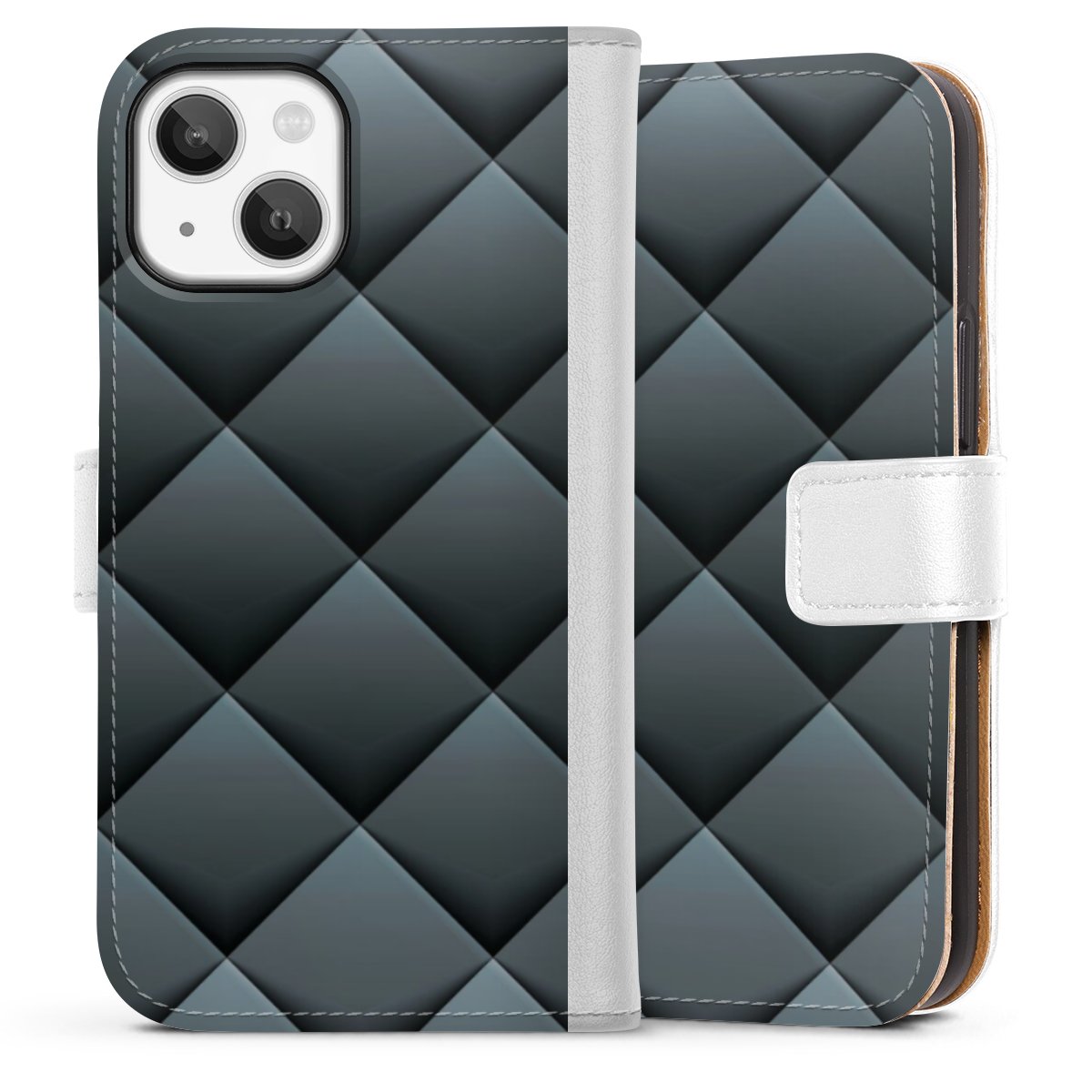 For our Sideflip Case we are using our advanced direct printing technology. The back and frontside are fully printabale, the inside of the phone bag is left unprinted. You can order the phone case without print, printed completely or also with a partial print.