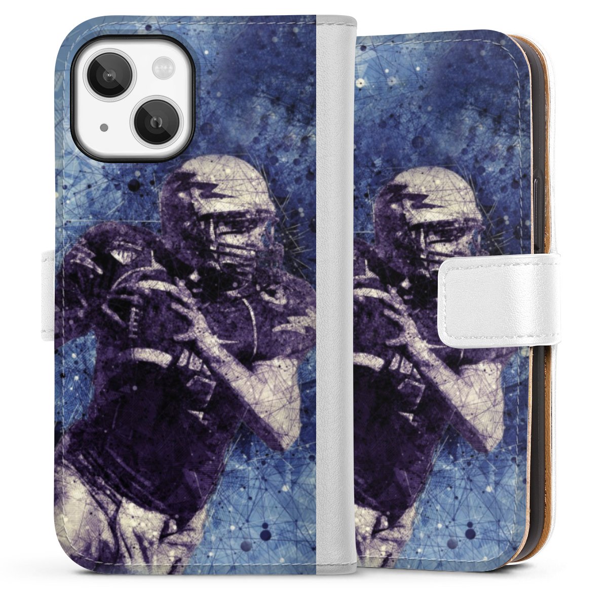 For our Sideflip Case we are using our advanced direct printing technology. The back and frontside are fully printabale, the inside of the phone bag is left unprinted. You can order the phone case without print, printed completely or also with a partial print.
