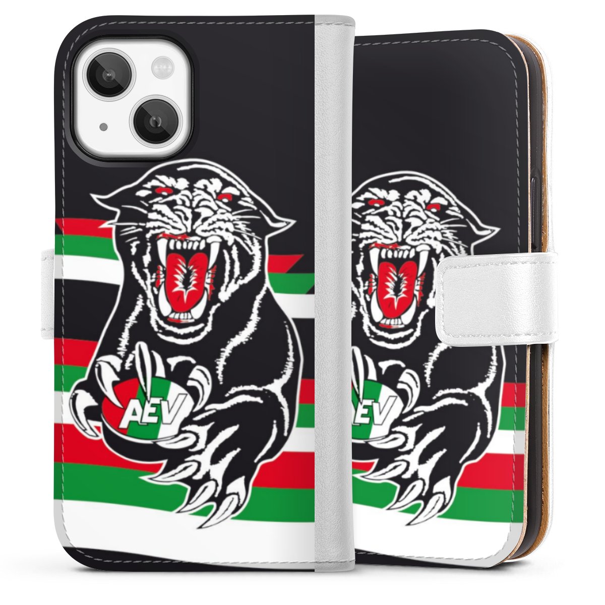 For our Sideflip Case we are using our advanced direct printing technology. The back and frontside are fully printabale, the inside of the phone bag is left unprinted. You can order the phone case without print, printed completely or also with a partial print.