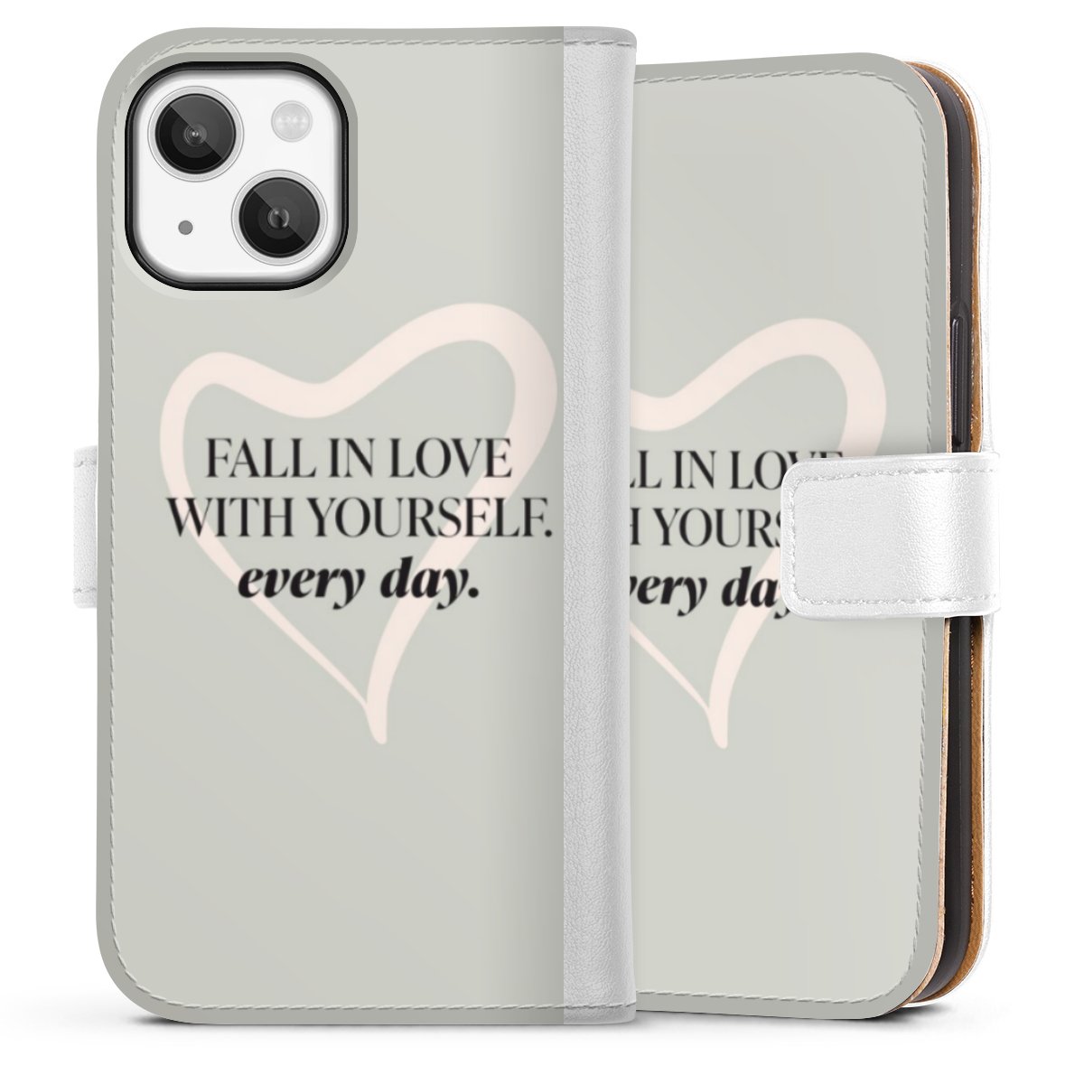 For our Sideflip Case we are using our advanced direct printing technology. The back and frontside are fully printabale, the inside of the phone bag is left unprinted. You can order the phone case without print, printed completely or also with a partial print.