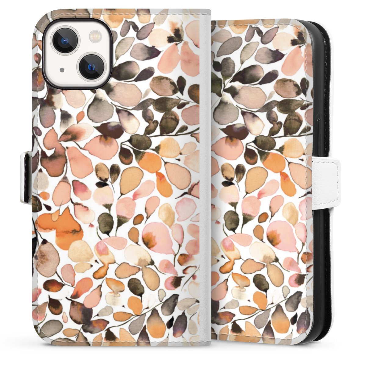 For our Sideflip Case we are using our advanced direct printing technology. The back and frontside are fully printabale, the inside of the phone bag is left unprinted. You can order the phone case without print, printed completely or also with a partial print.